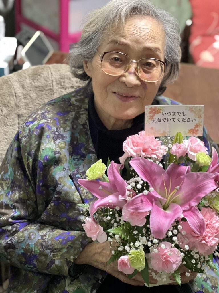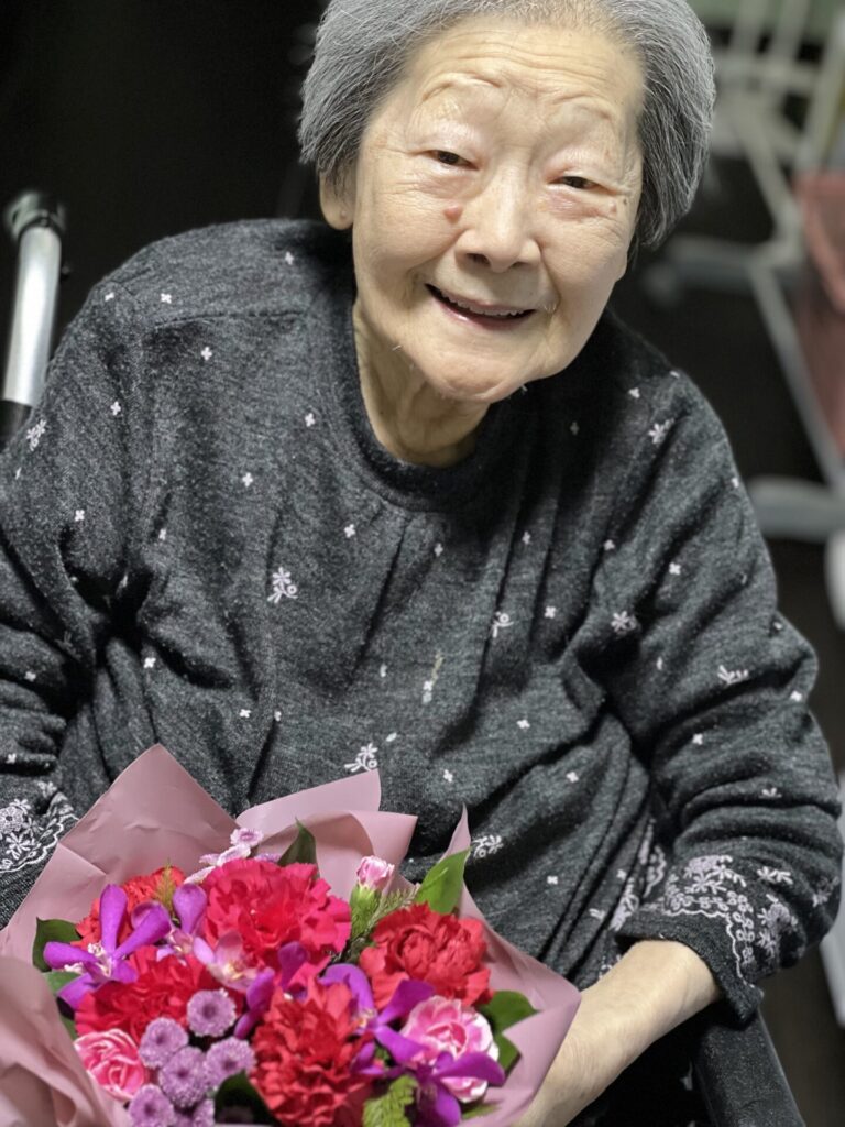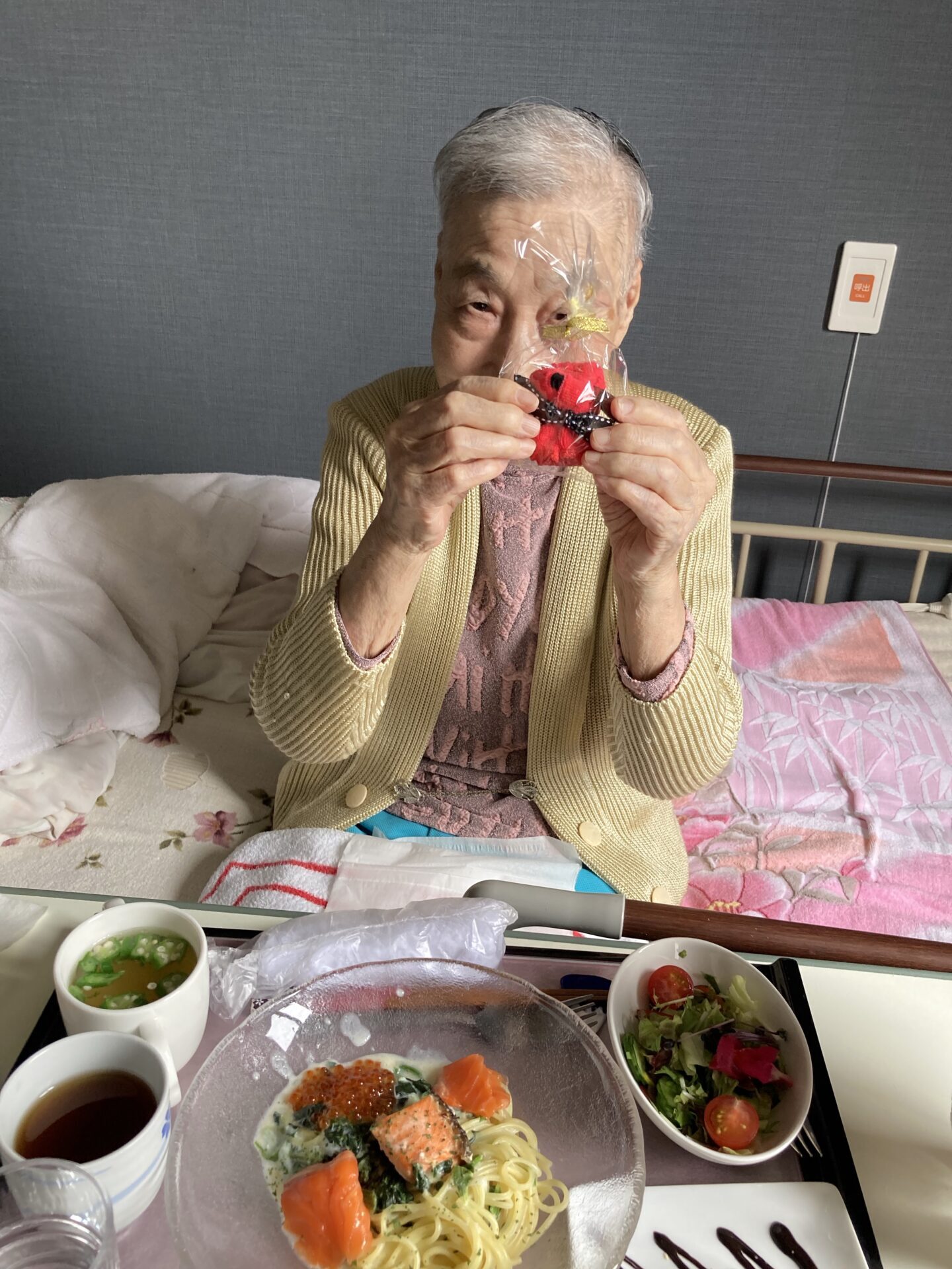 最高齢の利用者さん。いつまでも元気でいて欲しい、そんなご家族さんの思いがグッとこめられているようです☺️