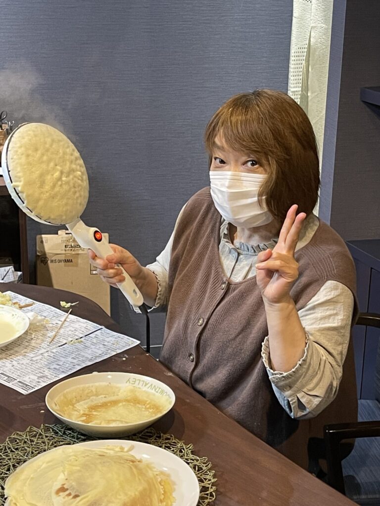 その次の年にはしっかりとパンケーキのもとを投入する安牌を切りながらもリベンジワッフルを再度焼き、今年の母の日にも美味しいワッフルを……と思いましたが、流石にそろそろ飽きられるのでパートナーのみんなで楽しくクレープを焼いて、生クリームモリモリで堪能するおもてなしすることにしました。
