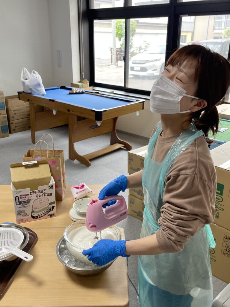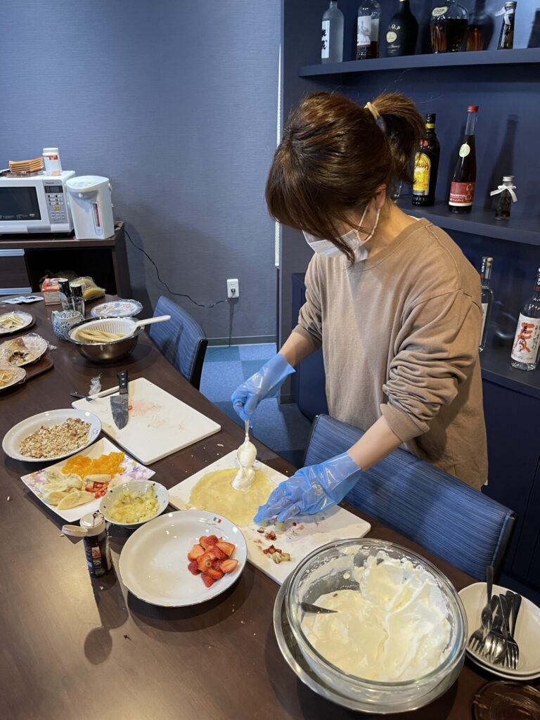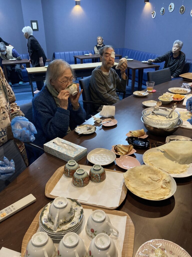 一緒に作りたい!と名乗り出てくれた利用者さんも一緒にクレープを作りました