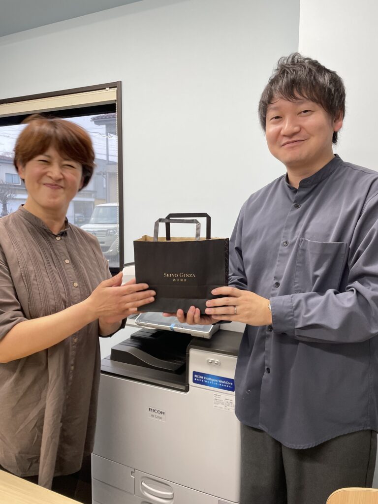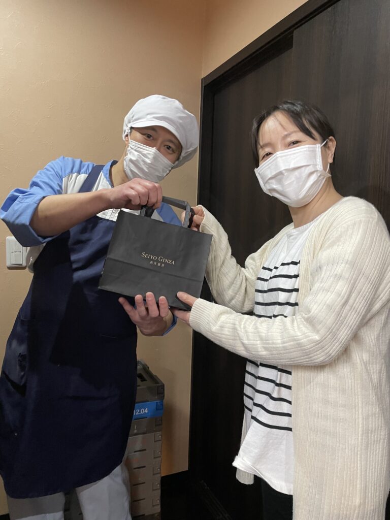 続いて、いつも美味しいご飯を作って下さりお世話になっているレストランの皆さんと、男性職員にも、愛と感謝の意を込めて、presentふぉーゆー?