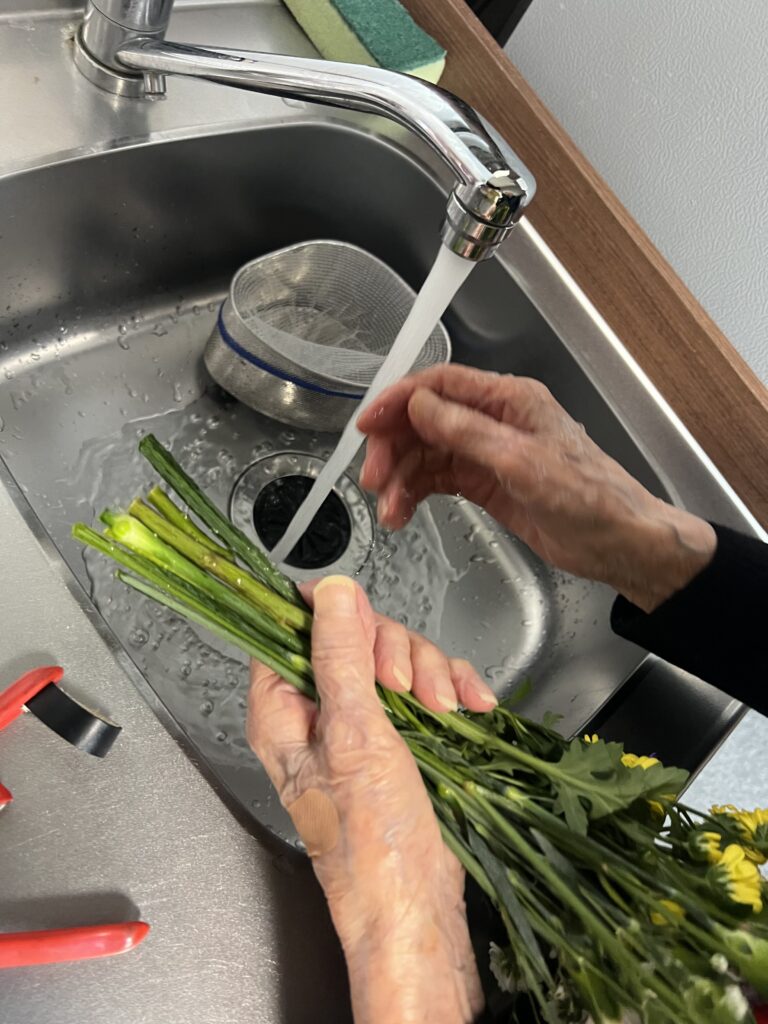 「切り口を新しくしてあげると、いっぱいお水吸ってくれるんだよ」