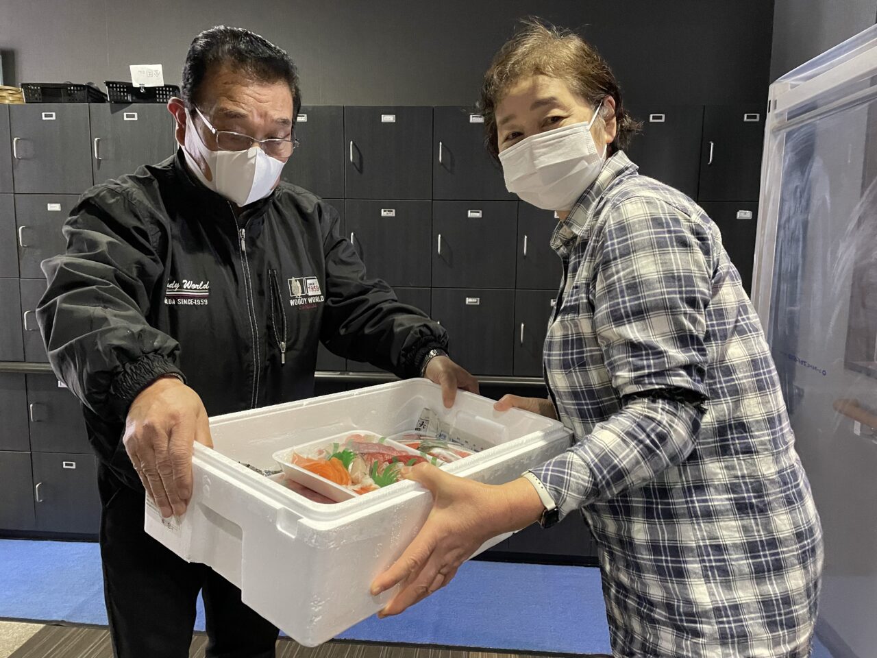 まずは第一弾で山田部長がお刺身と新巻鮭を届けてくださいました?