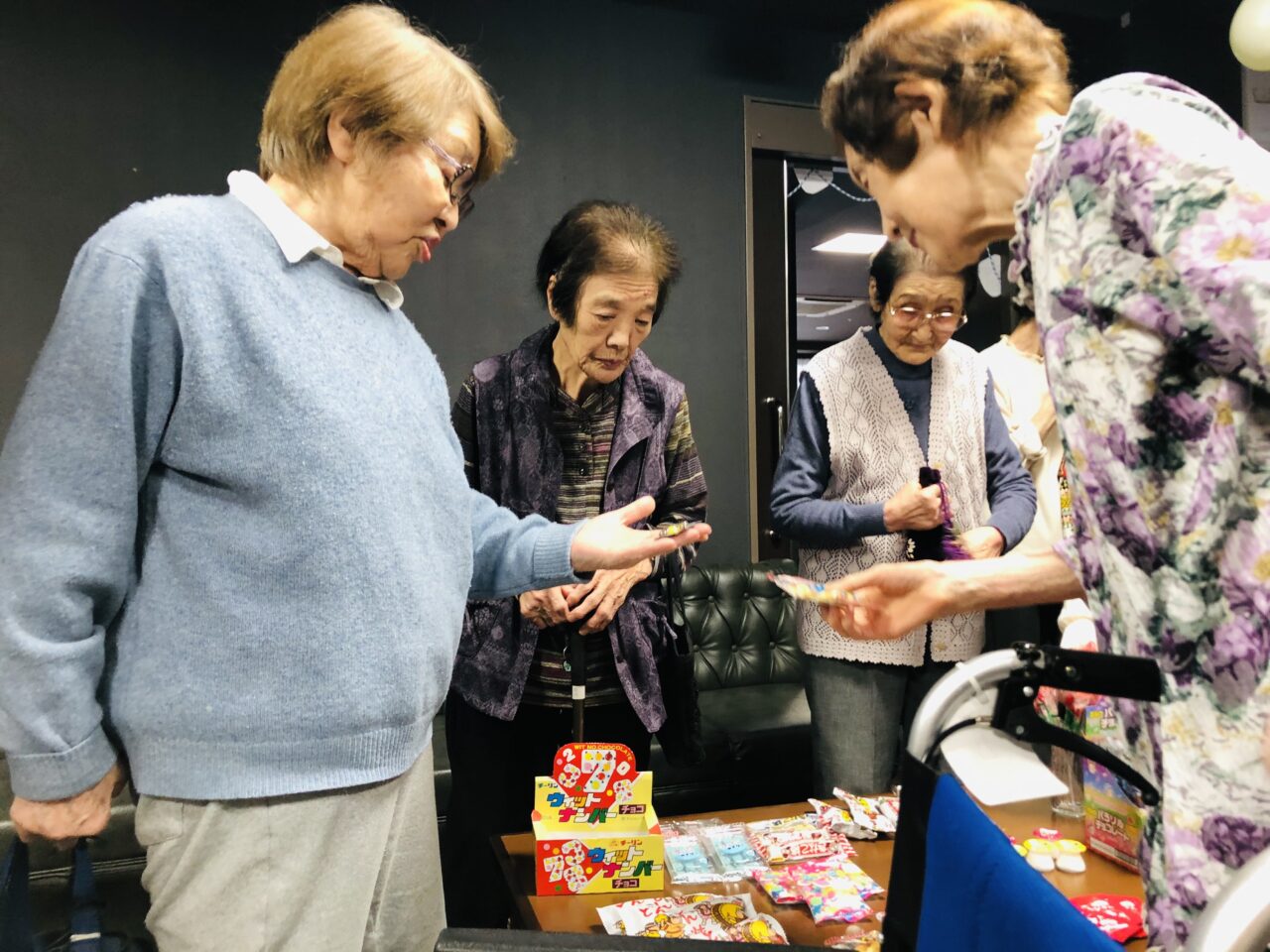 懐かしいお菓子に利用者さん達の会話も弾み、皆さんいい笑顔ですね♥️