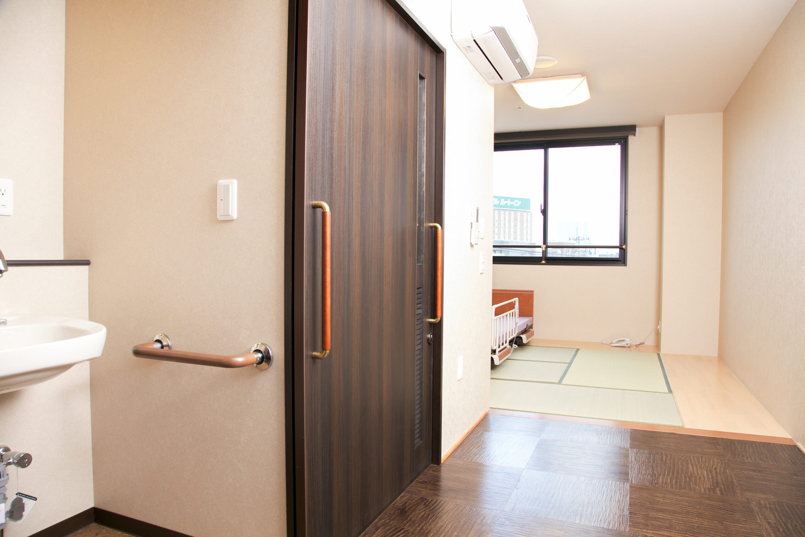 洗面所とトイレが室内にあります。車椅子でも充分なスペースを確保。