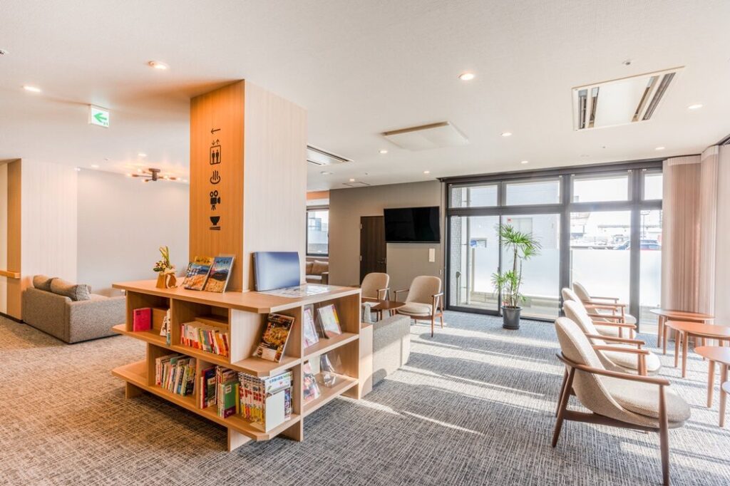 1階のロビーエリアは仕切りをなくしたことで開放感あふれるロビーになり、広々とした空間でゆったりとお過ごしいただけます。受付もロビーも一つの空間になり、利用者さんも職員もコミュニケーションがより取りやすい環境になります。