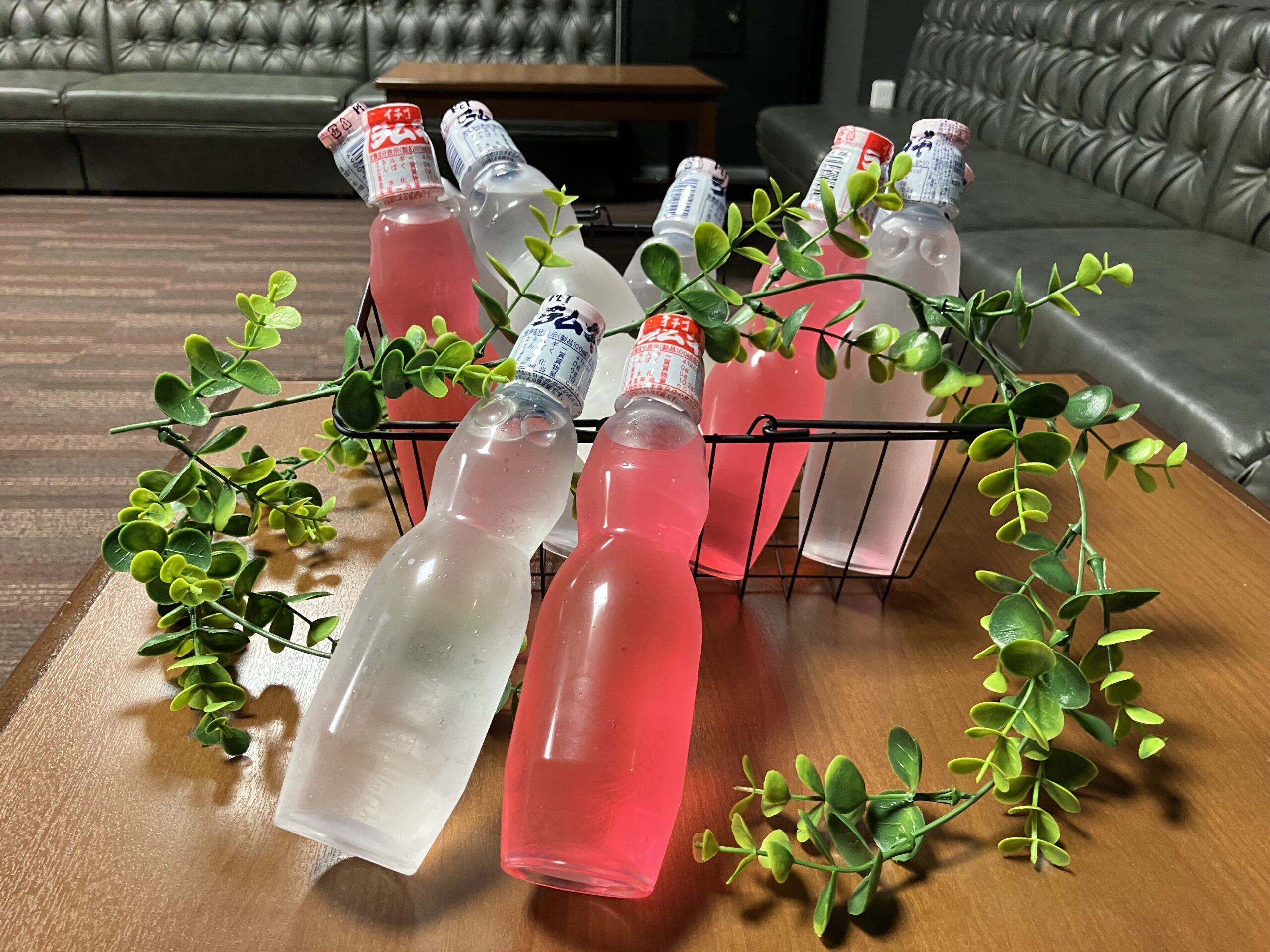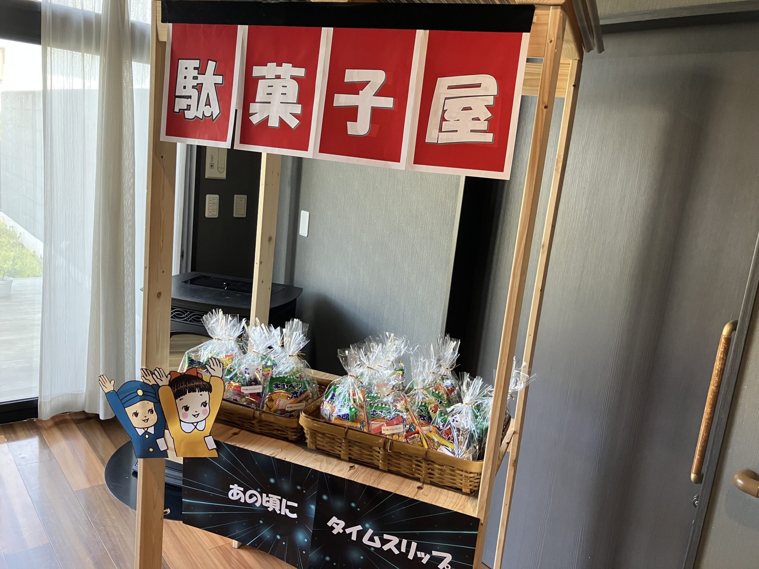 館内はシックで和モダンなデザインで、落ち着いた雰囲気が特徴。1階には駄菓子屋風の売店を設置しており、日用品やお菓子、飲料などが購入できます。