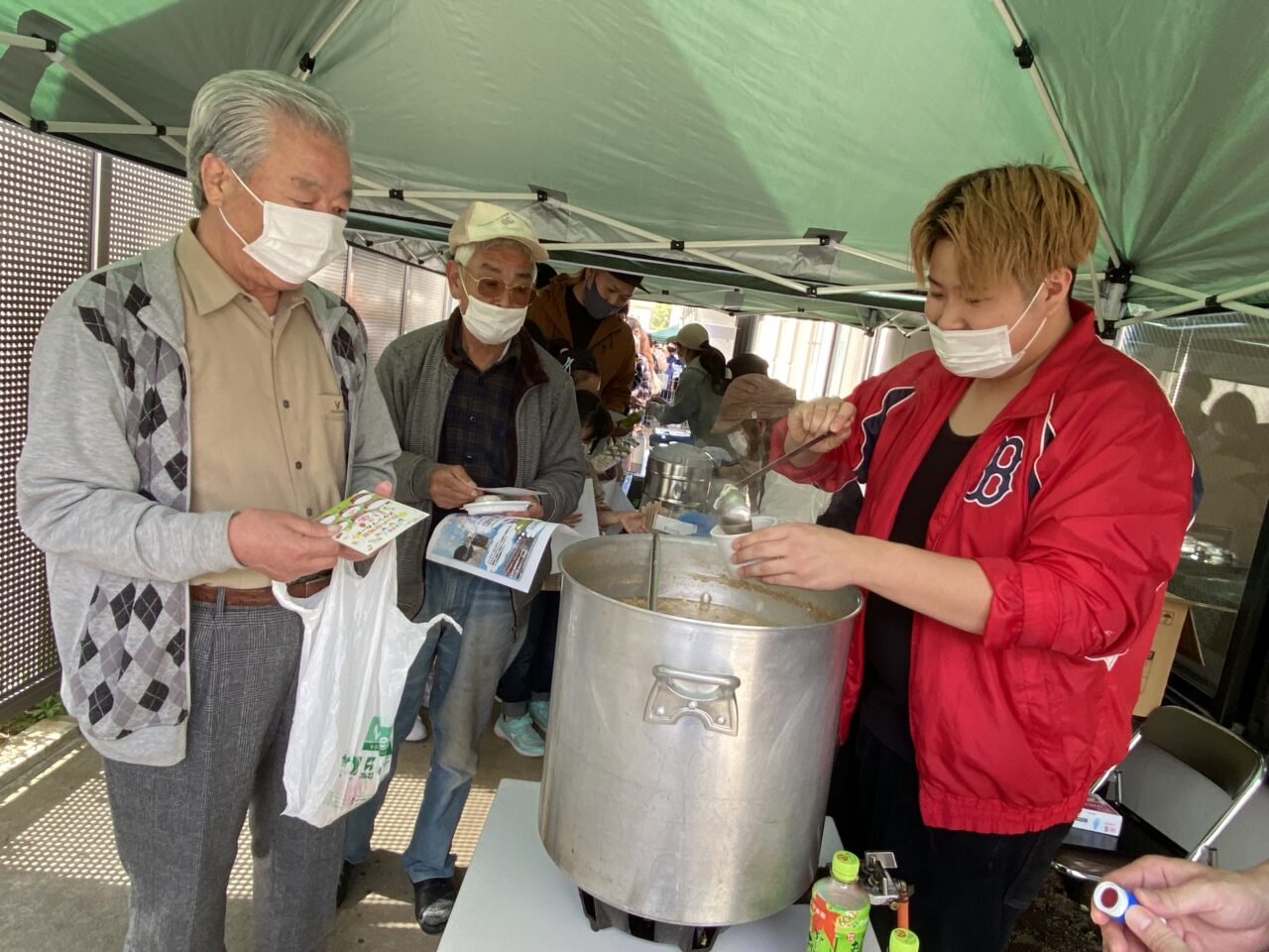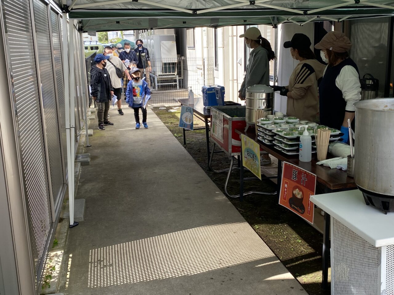 地元野菜たっぷりの熱々の「豚汁」が用意しているブースへ繋がっています!