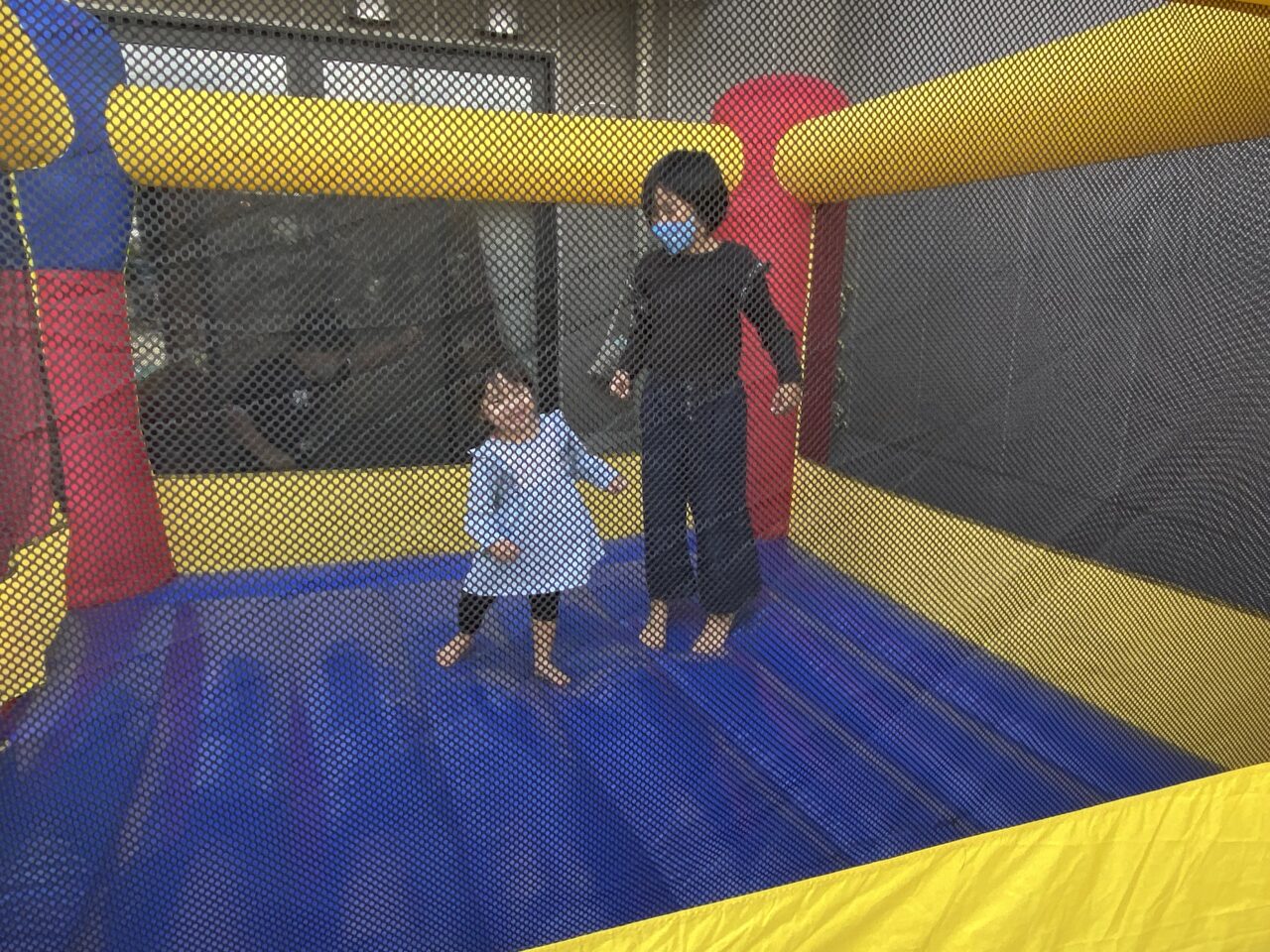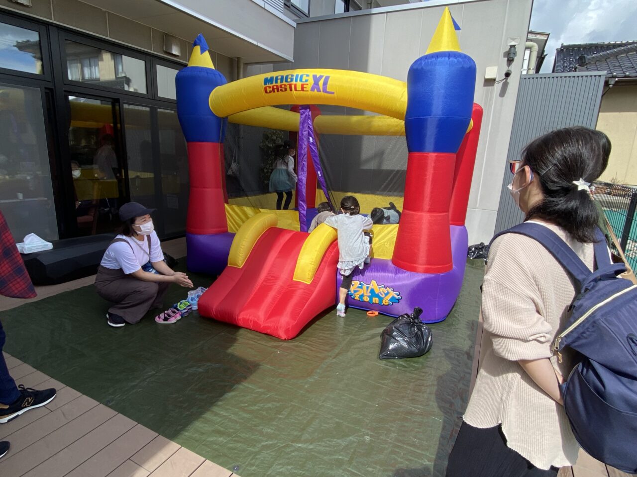 また来場の反対にあるテラスには、子供たちに大人気のエアー遊具も設置しましたよ!