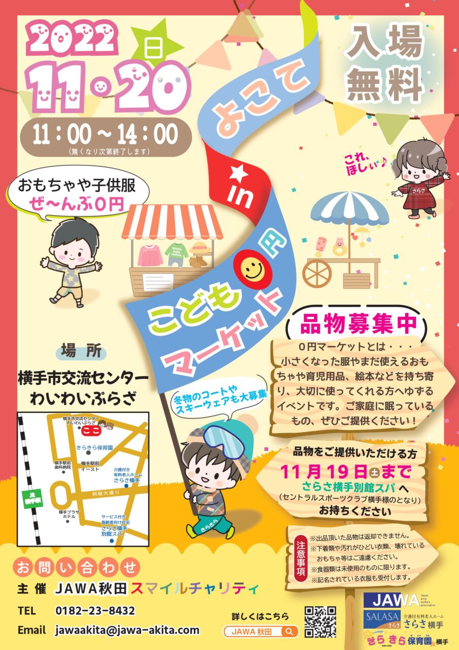 第2回✨こども0円マーケットinよこて 開催のお知らせ – さらさ JAWA秋田 (jawa-akita.com)