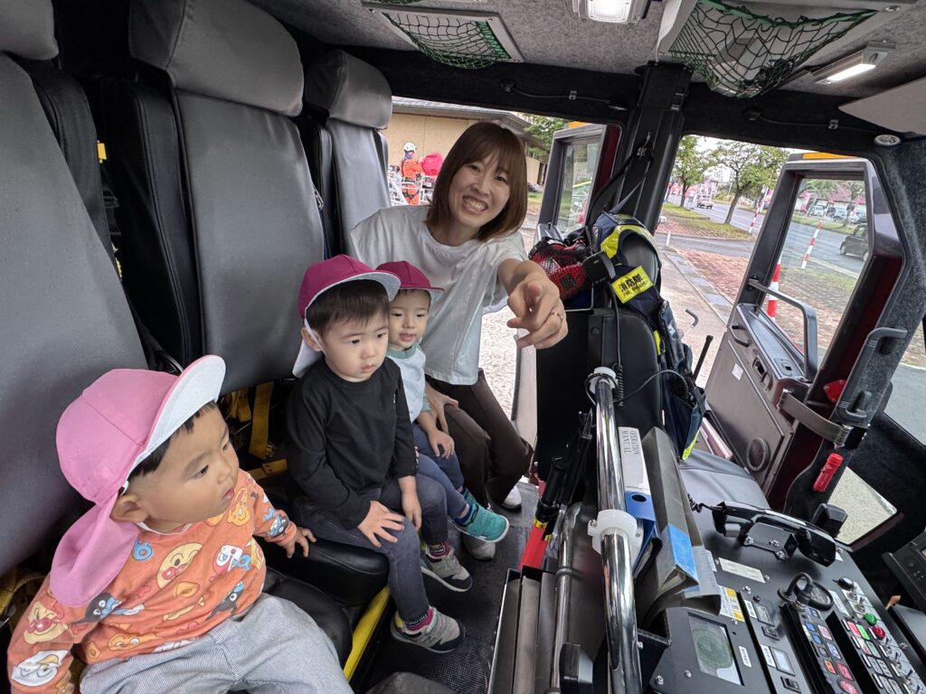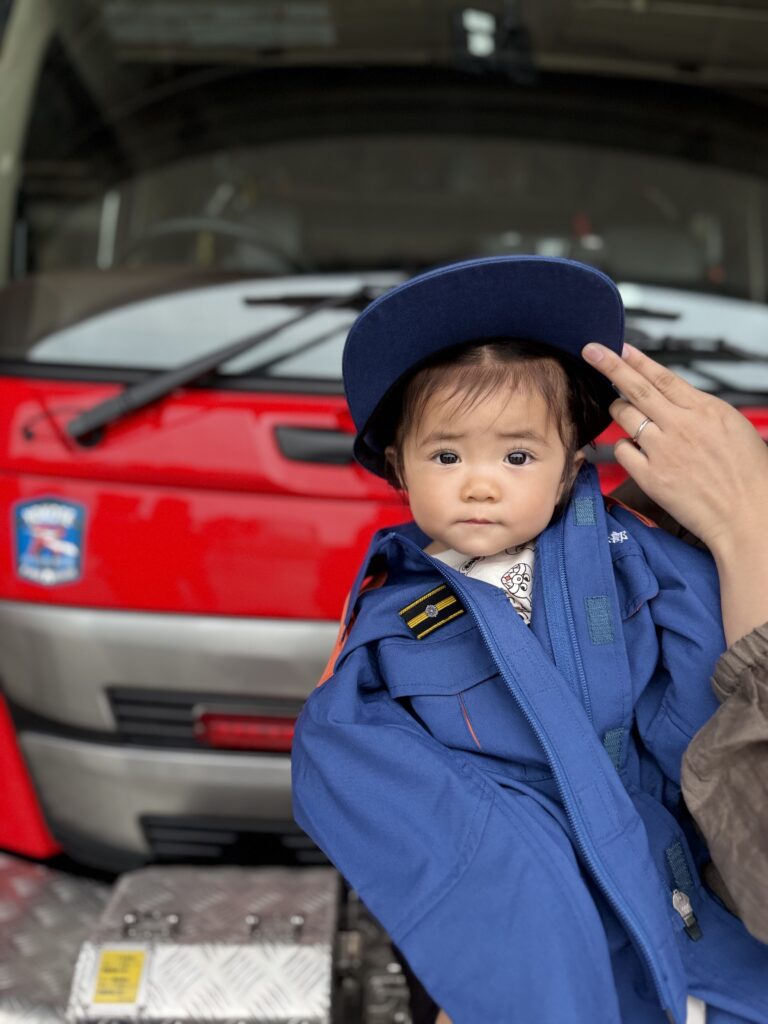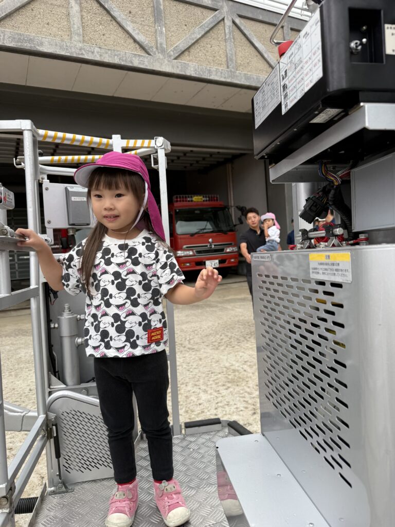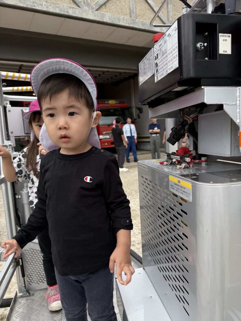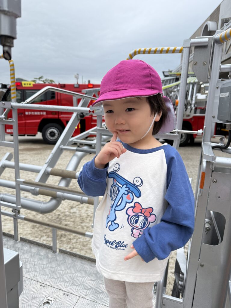 上にいる消防士さんにバイバーイと手を振ったり、たかーいハシゴを目を丸くして見たりして楽しんでいましたよ💫