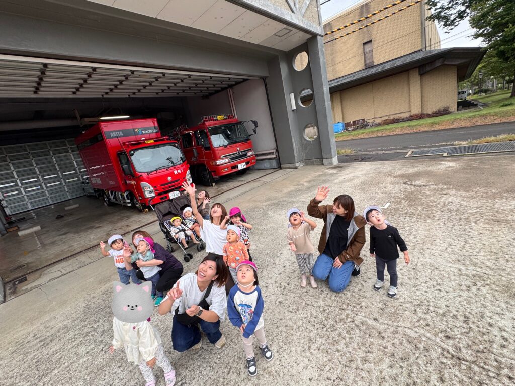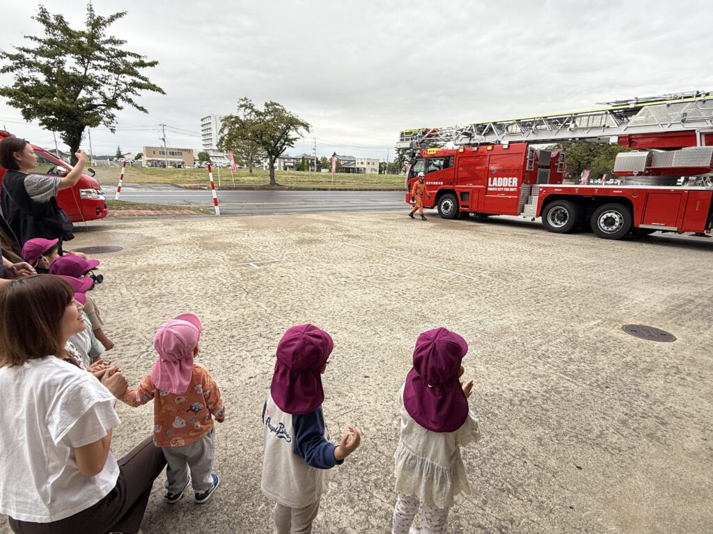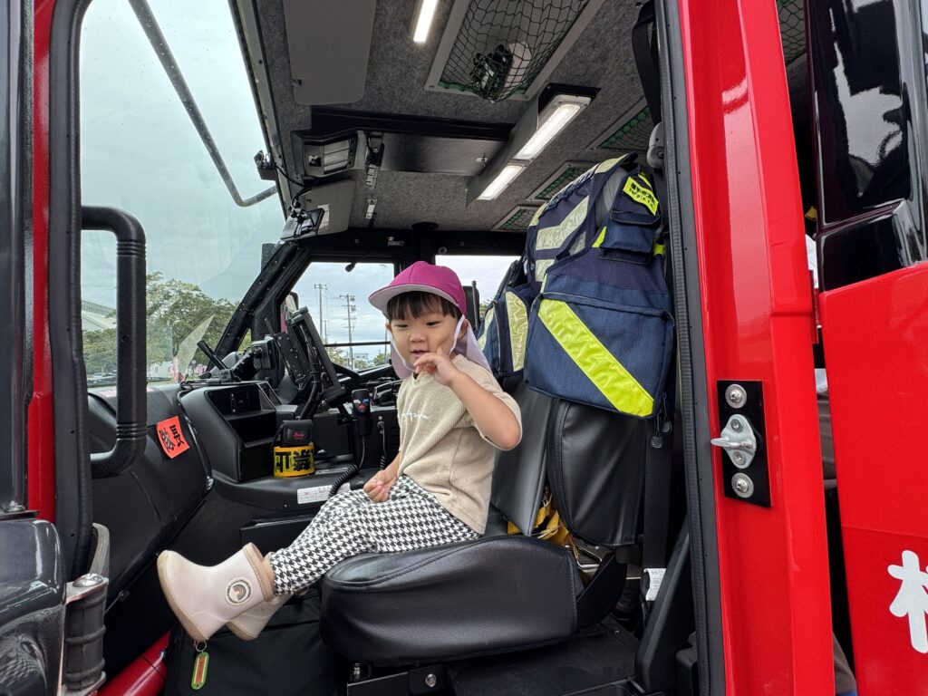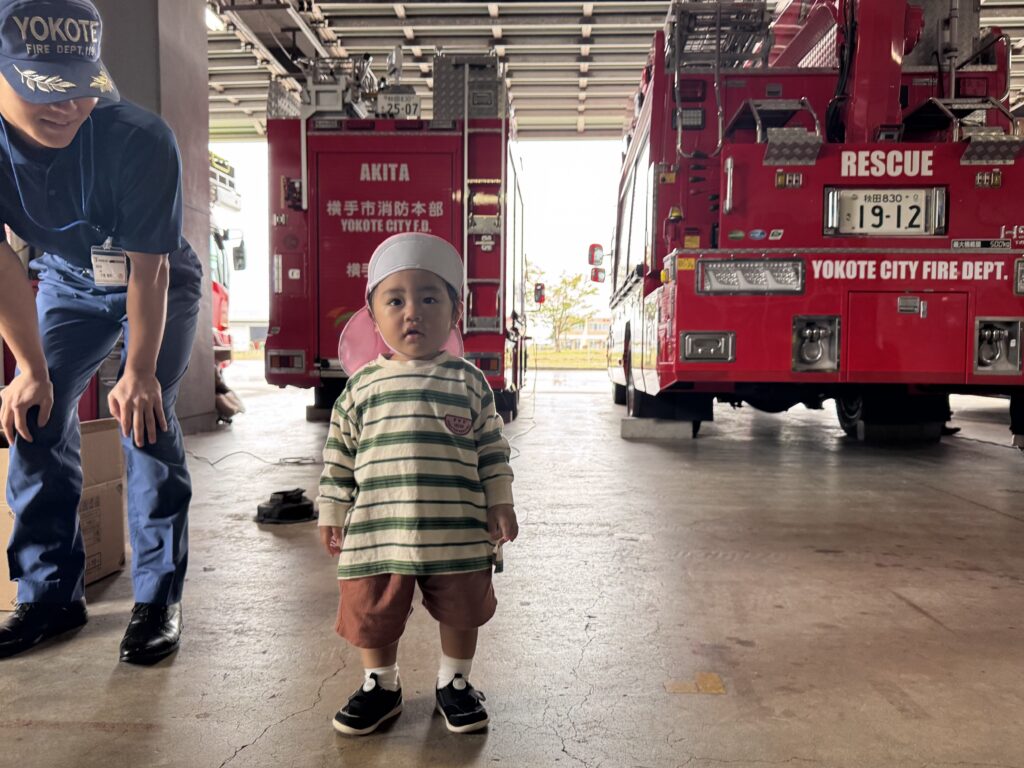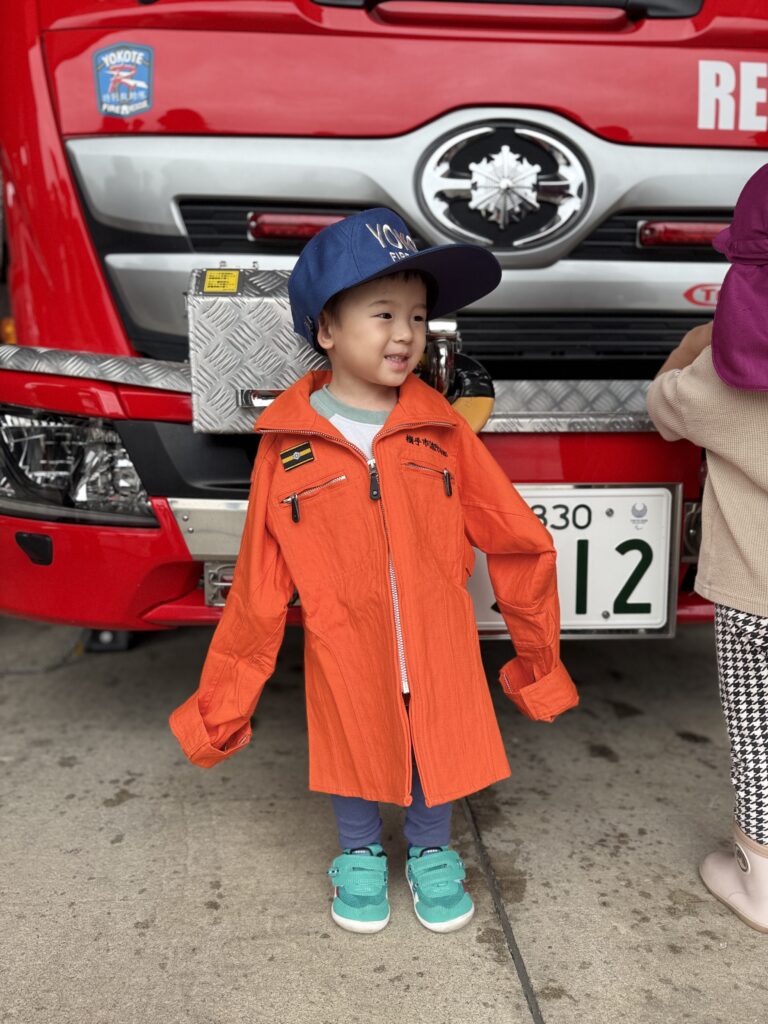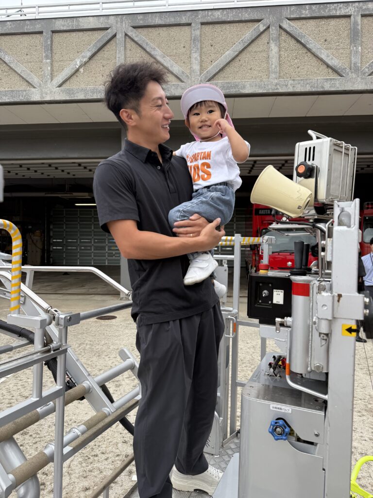 上にいる消防士さんにバイバーイと手を振ったり、たかーいハシゴを目を丸くして見たりして楽しんでいましたよ💫