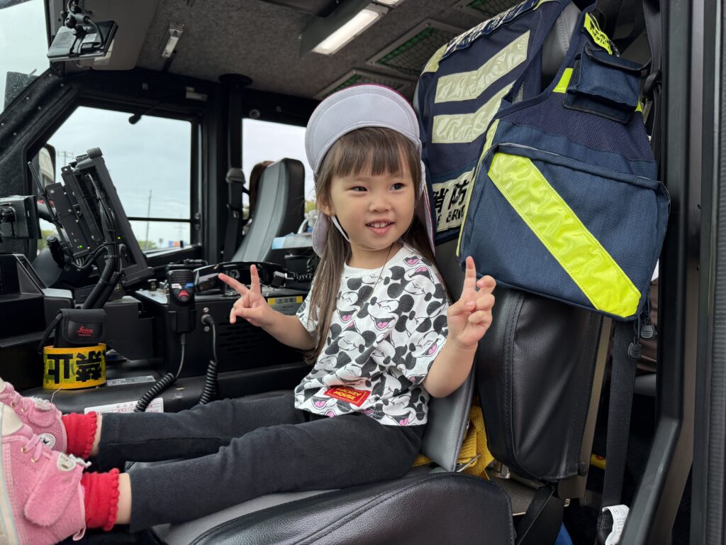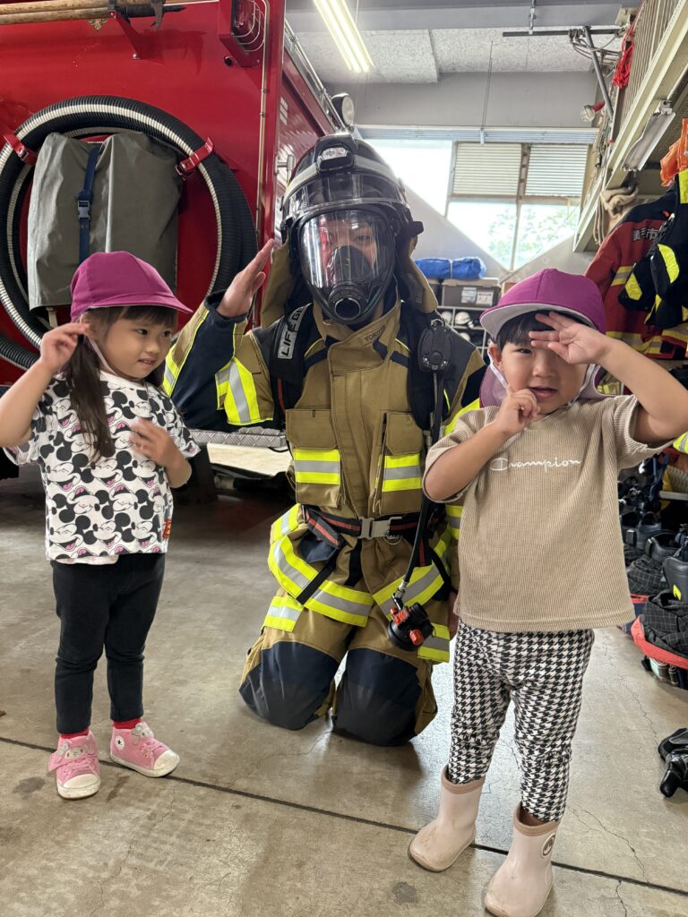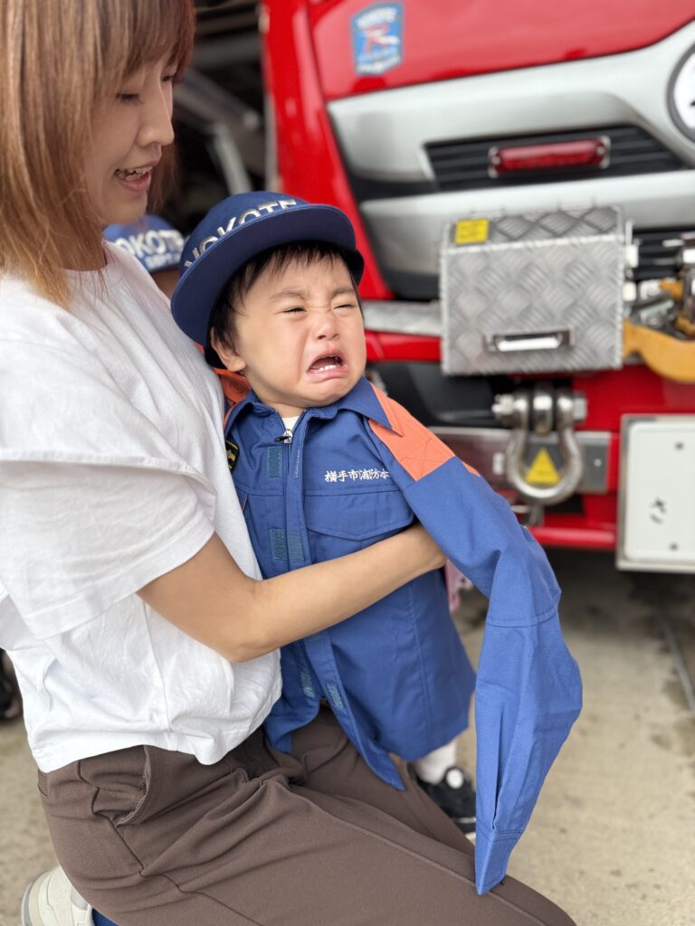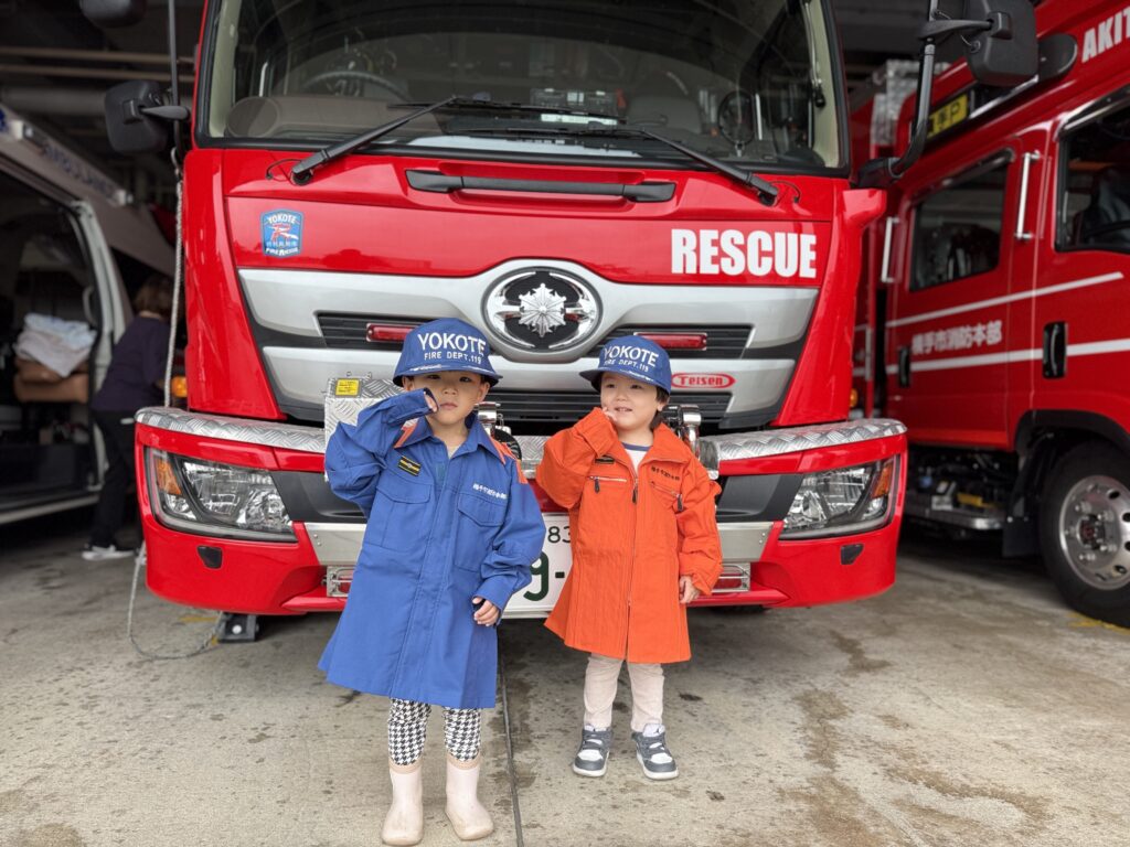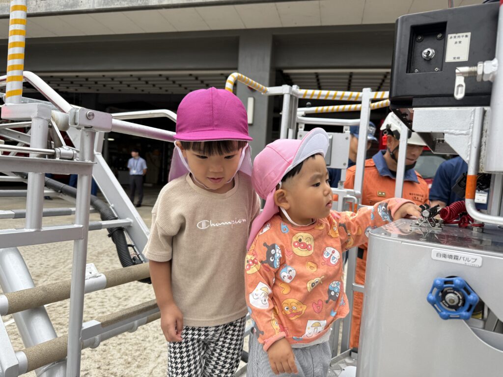 上にいる消防士さんにバイバーイと手を振ったり、たかーいハシゴを目を丸くして見たりして楽しんでいましたよ💫