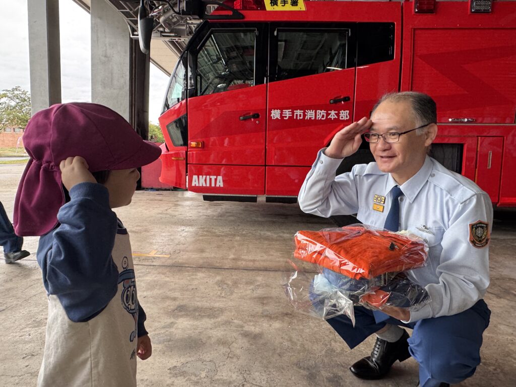 横手消防署本部様には、こちらの子供用活動服と子供用救助服を寄贈させていただきました😌💫