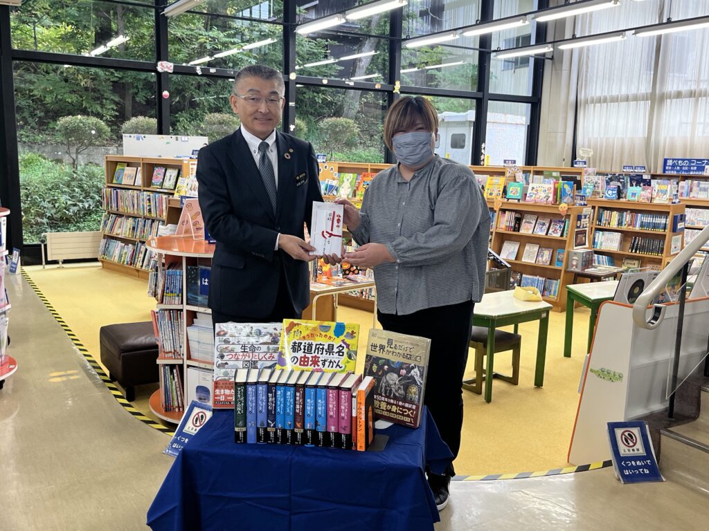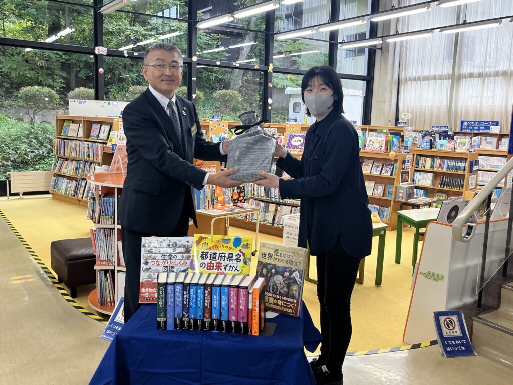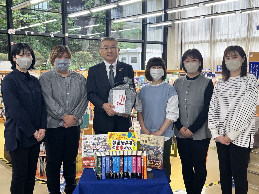 教育部長の髙橋様より「大事に使わせて頂きます。」とのお言葉を頂き、そして館長金野様から「書籍は高額な物が多くて助かります。ありがとうございました。」とのお言葉を頂き、無事贈呈式を終える事ができました。