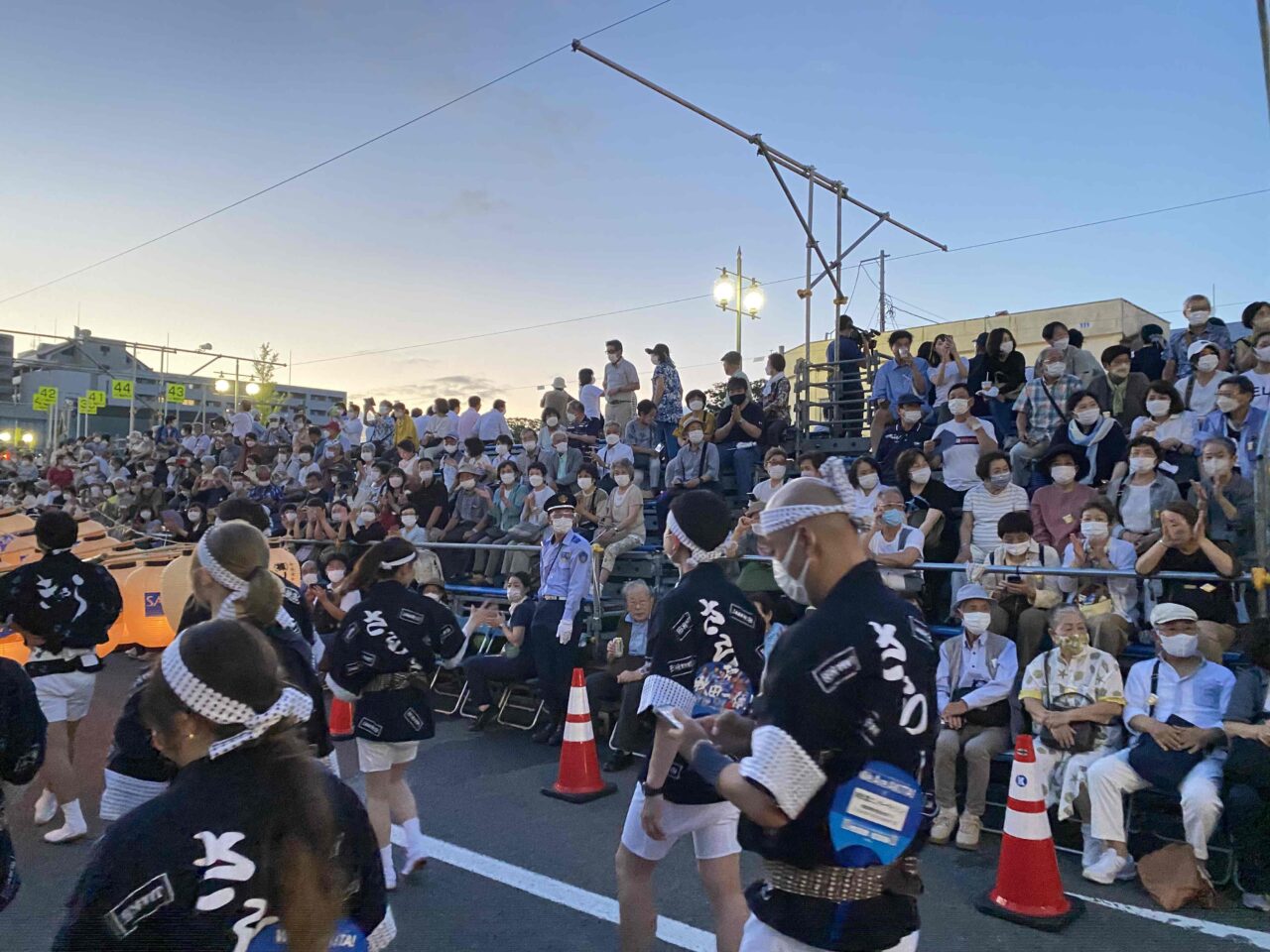 竿燈通りに出ると観覧席やお店からも沢山の人が楽しみに待ってくださって