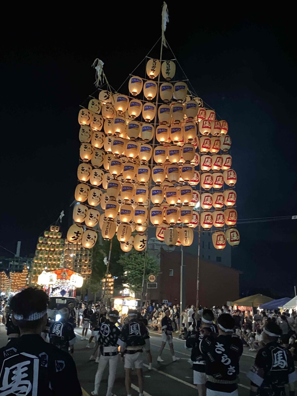 私は初めてさらさの提灯を見ましたが、さらさの青いロゴマークが綺麗に灯っていました🕯️