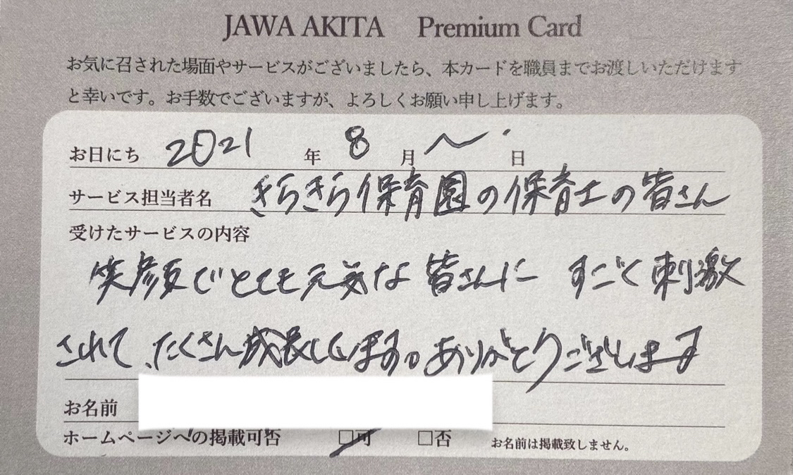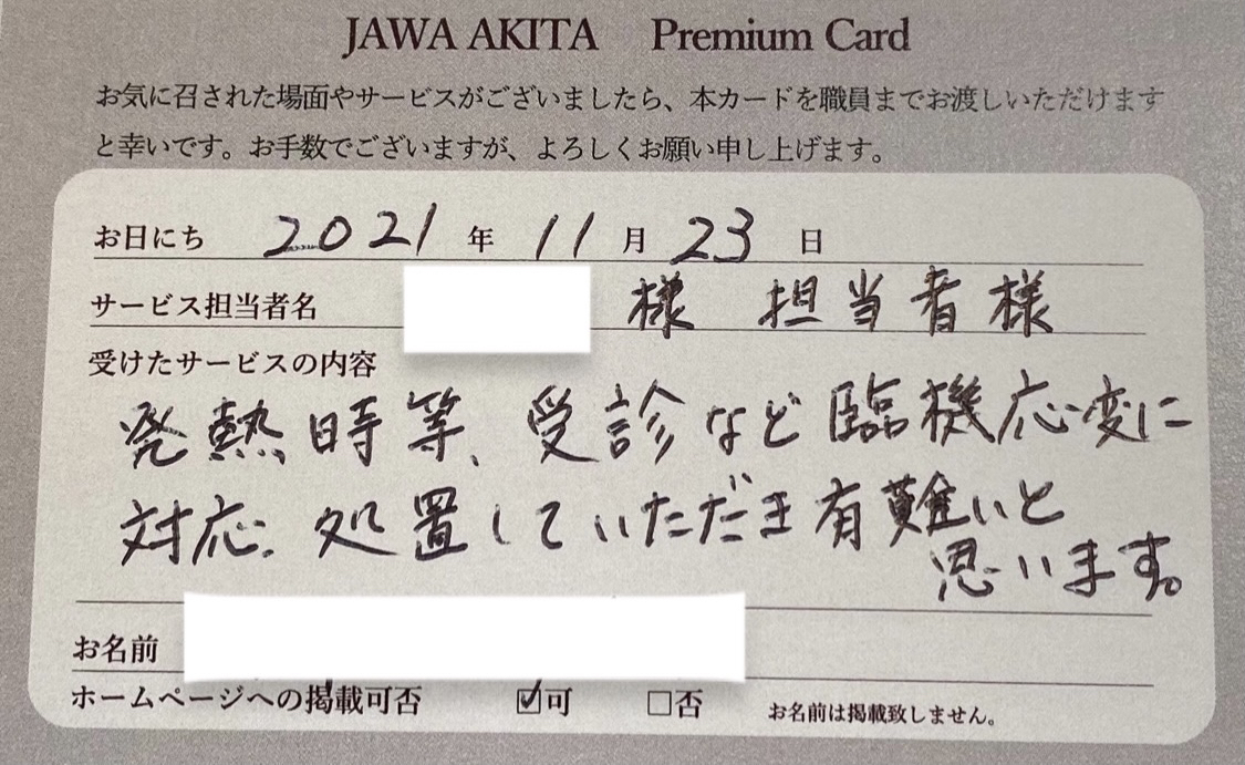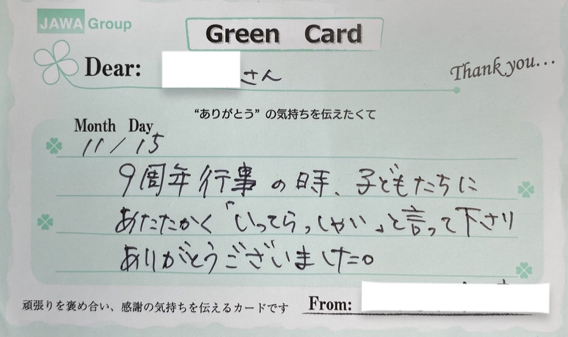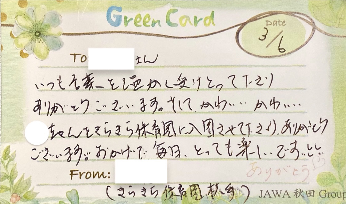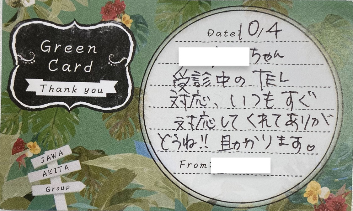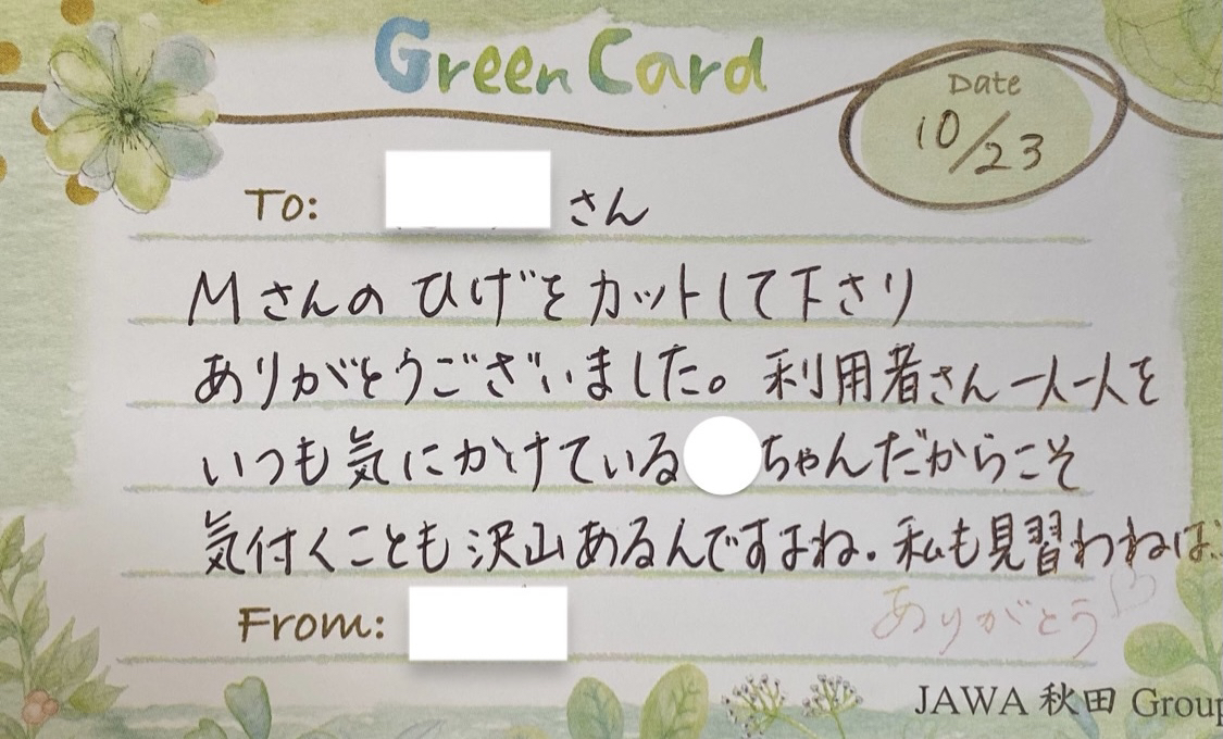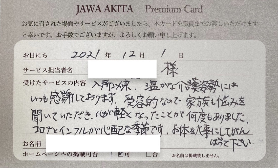 現在お会いする機会も少ないご利用者のご家族から頂戴するのは