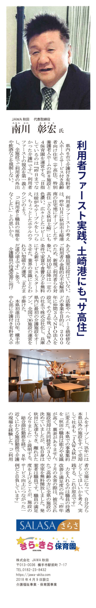 2024.01.03 秋田魁新報にて「トップインタビュー2024」記事が掲載されました イベント・お知らせ 2024年1月1日付け 秋田魁新報社「トップインタビュー2024」において、弊社代表取締役 南川彰宏のインタビュー記事が掲載されました。