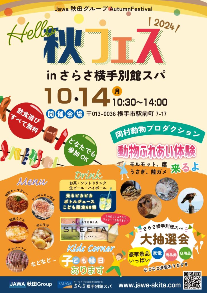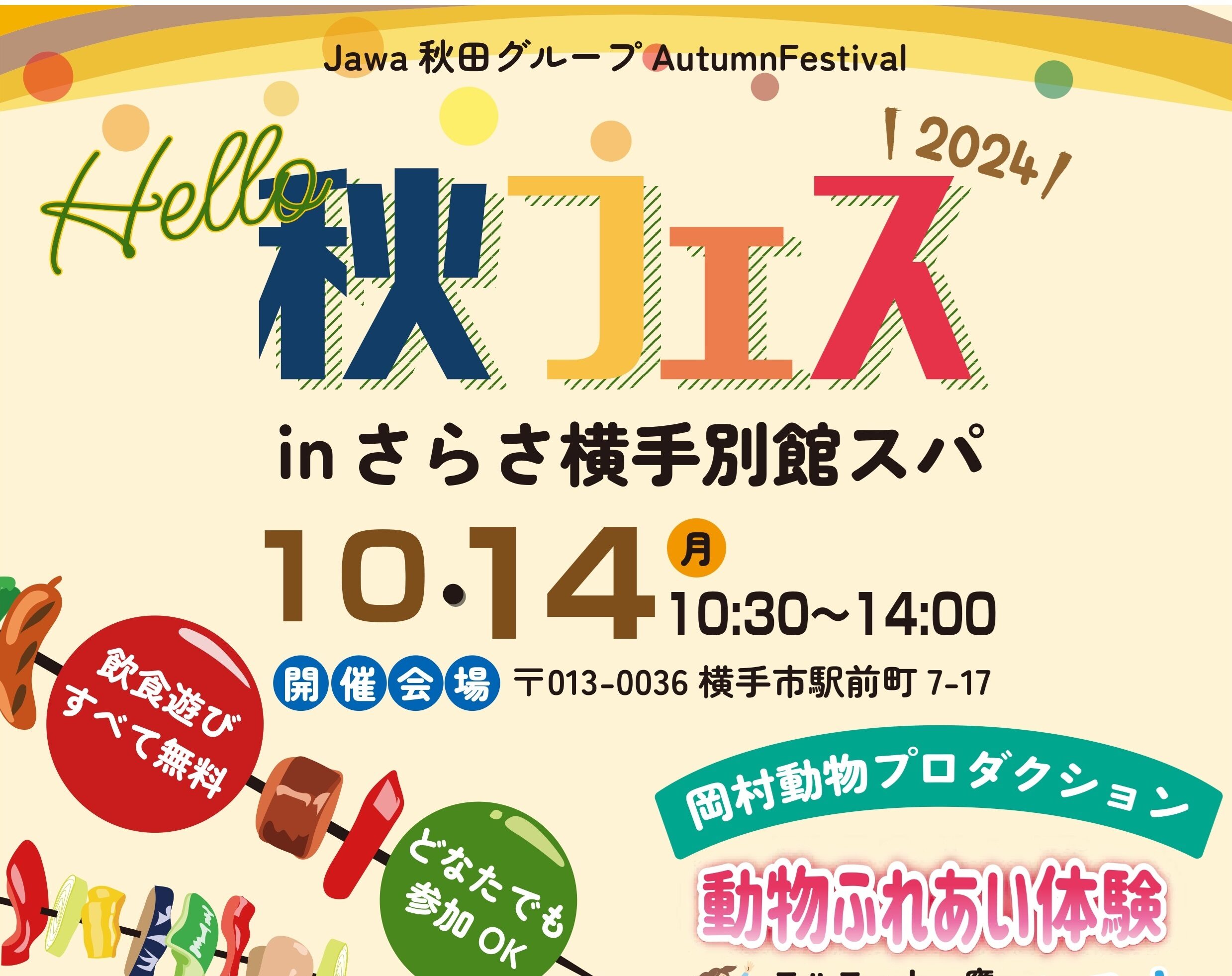 先月に大雨の影響により開催が延期となりました「さらさ横手別館スパ さらば夏フェス」は、秋バージョンで開催することに決定しましたので、お知らせします🍁