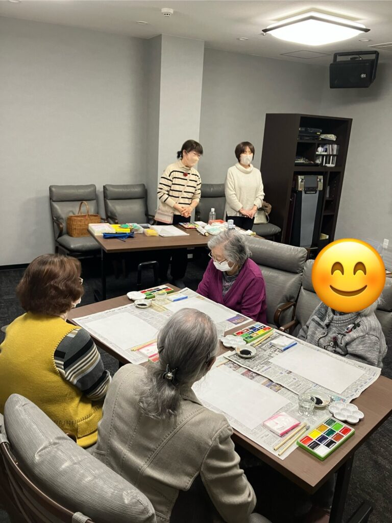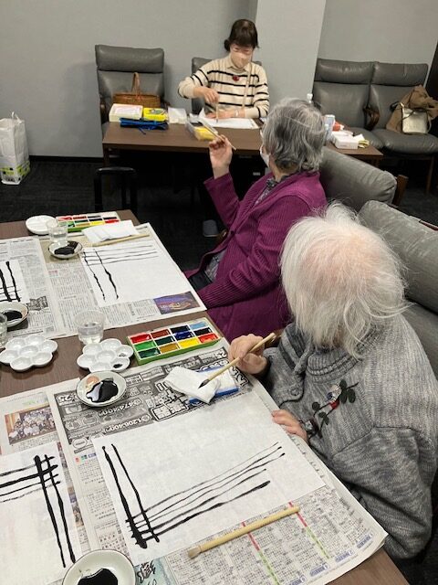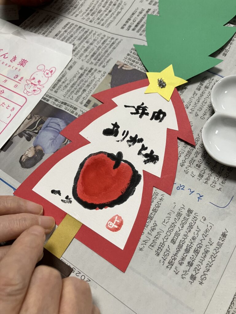 久しぶりの筆や、飾りつけのシール貼りに童心に帰ったとおっしゃられておりました。