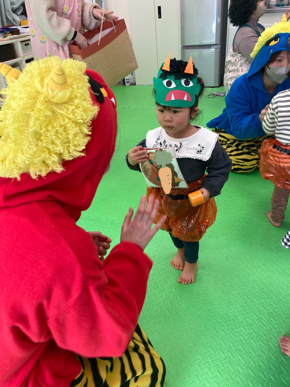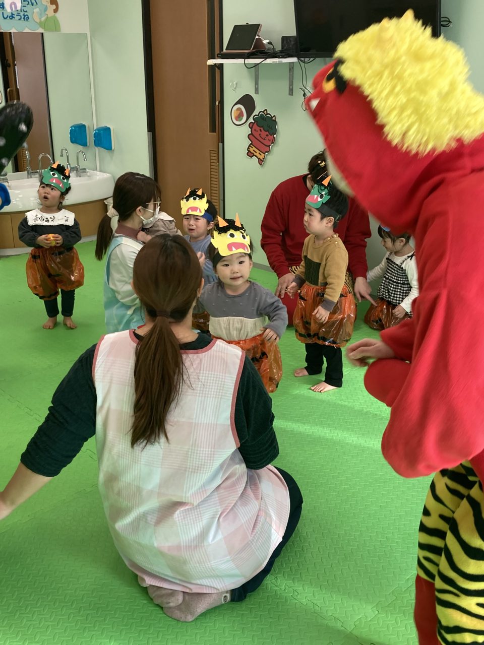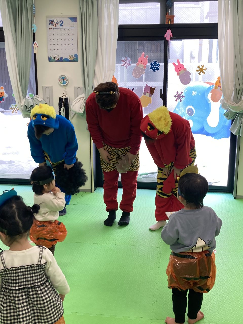 今年も節分がやってきましたね!子ども達は先月から豆まきの歌を歌ったり、鬼のパンツのダンスをしたり節分に向けて練習してきました?
