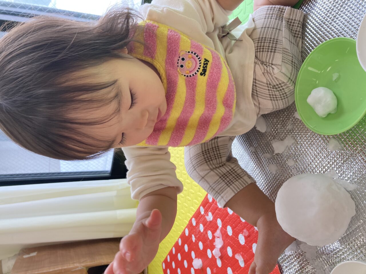 「さ…寒すぎる〜?」ということで、お部屋の中で雪に触って遊びました⛄️
