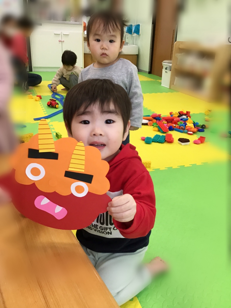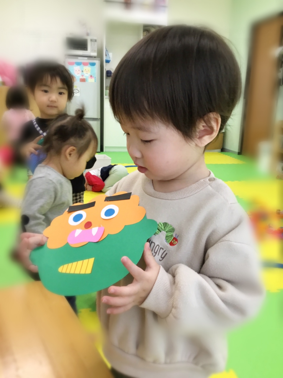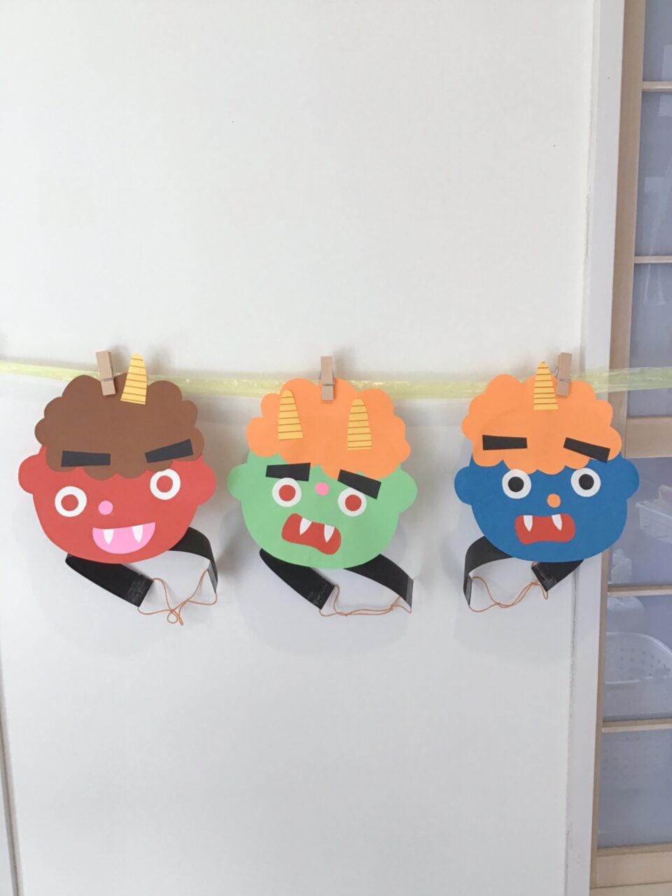 来月の節分に向けてきらきらでは鬼のお面作りをしました?