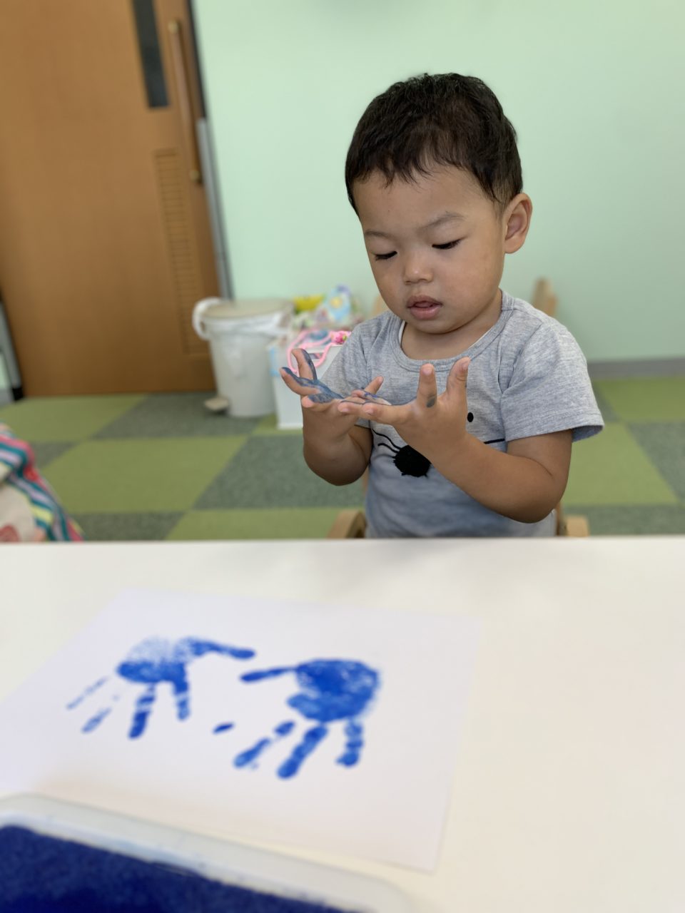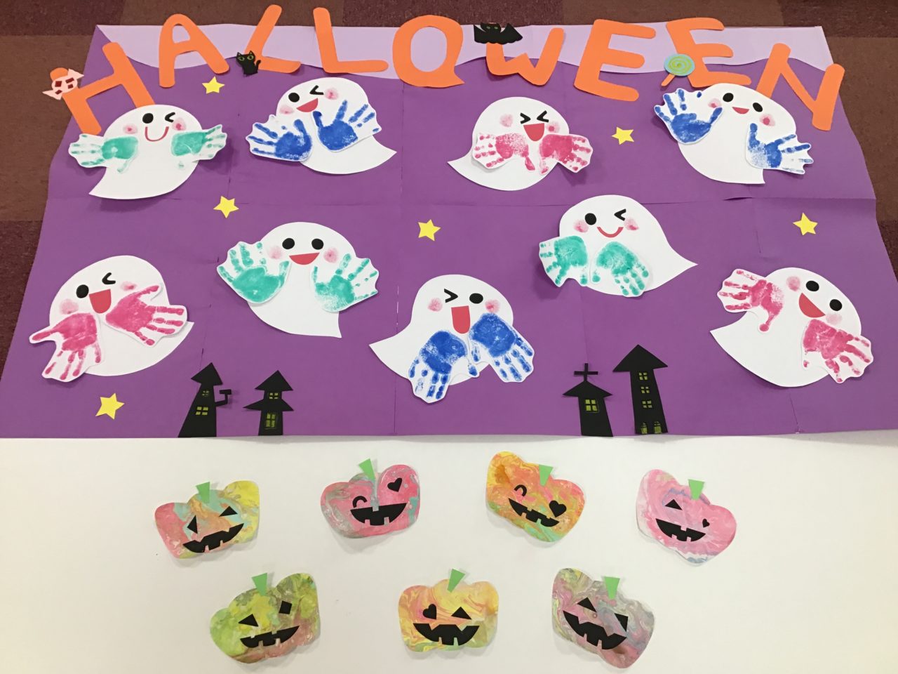 手型は『可愛いオバケ?』になり、マーブリングを?したのは『Jack O Lantern?』に変身しました。子ども達はハロウィン?が待ち遠しいようです?… お菓子?たくさんもらえるかな(笑)