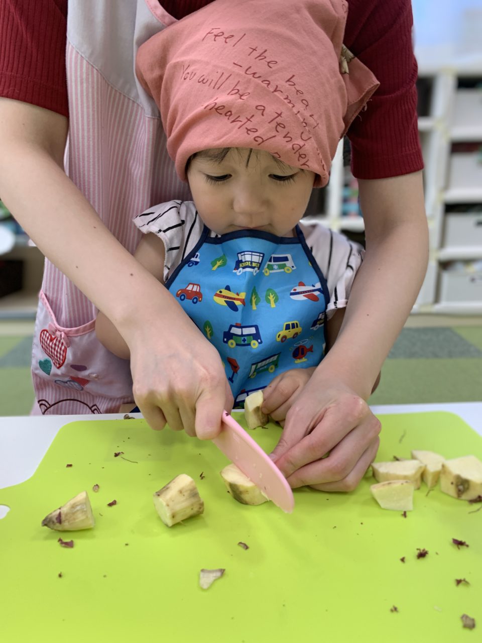 「中が白いー!」「冷たーい!」とさつまいもの特徴に気づいてくれました✨