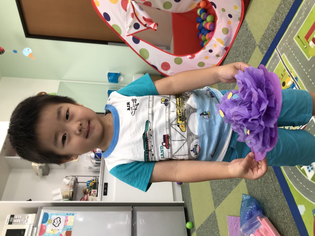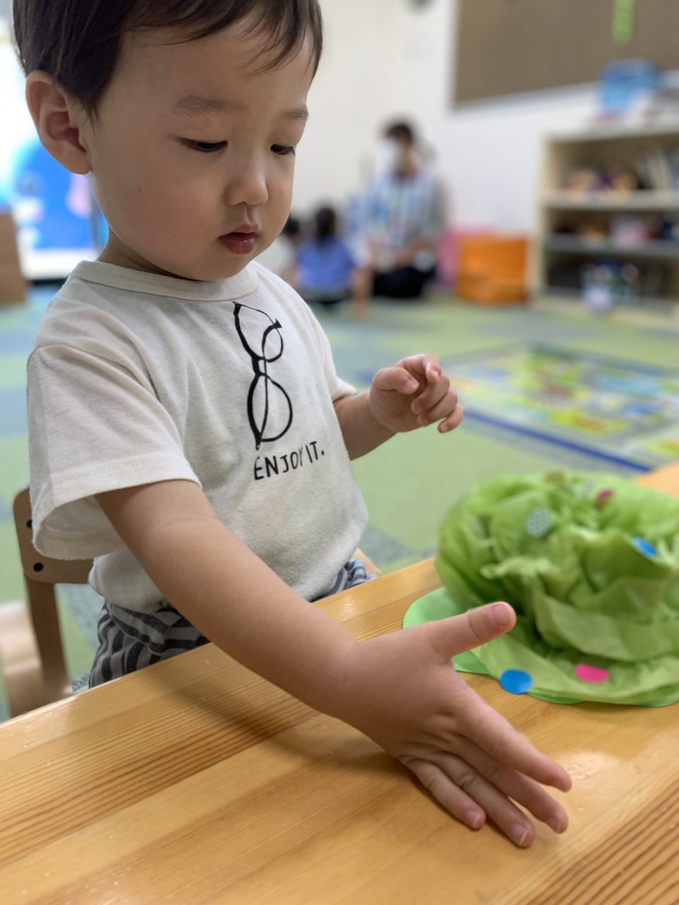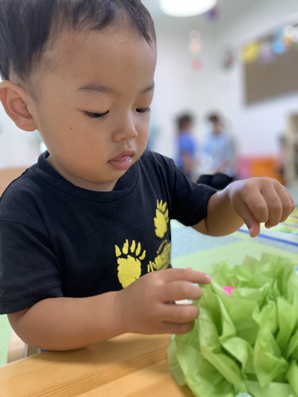 な、何と、お花紙はきらきらっこが好きなぶどう?になりました?「食べたい食べたい?」とほっぺを触りながら盛り上がっていました。