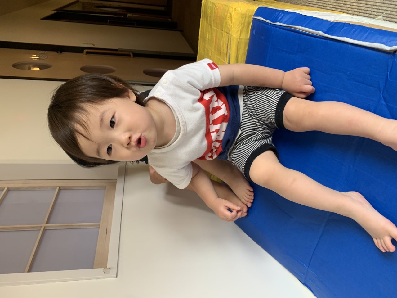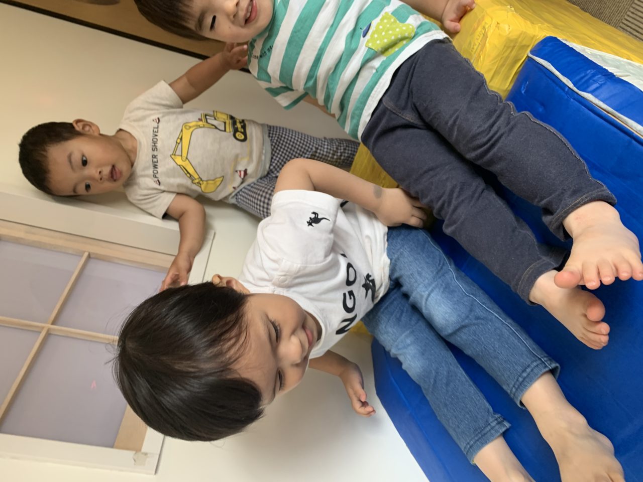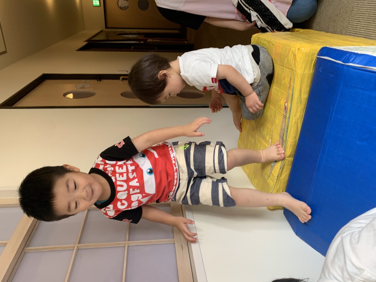 廊下を開放して走ったり滑り台を滑ったりして遊びます✨