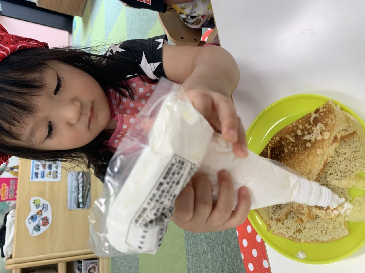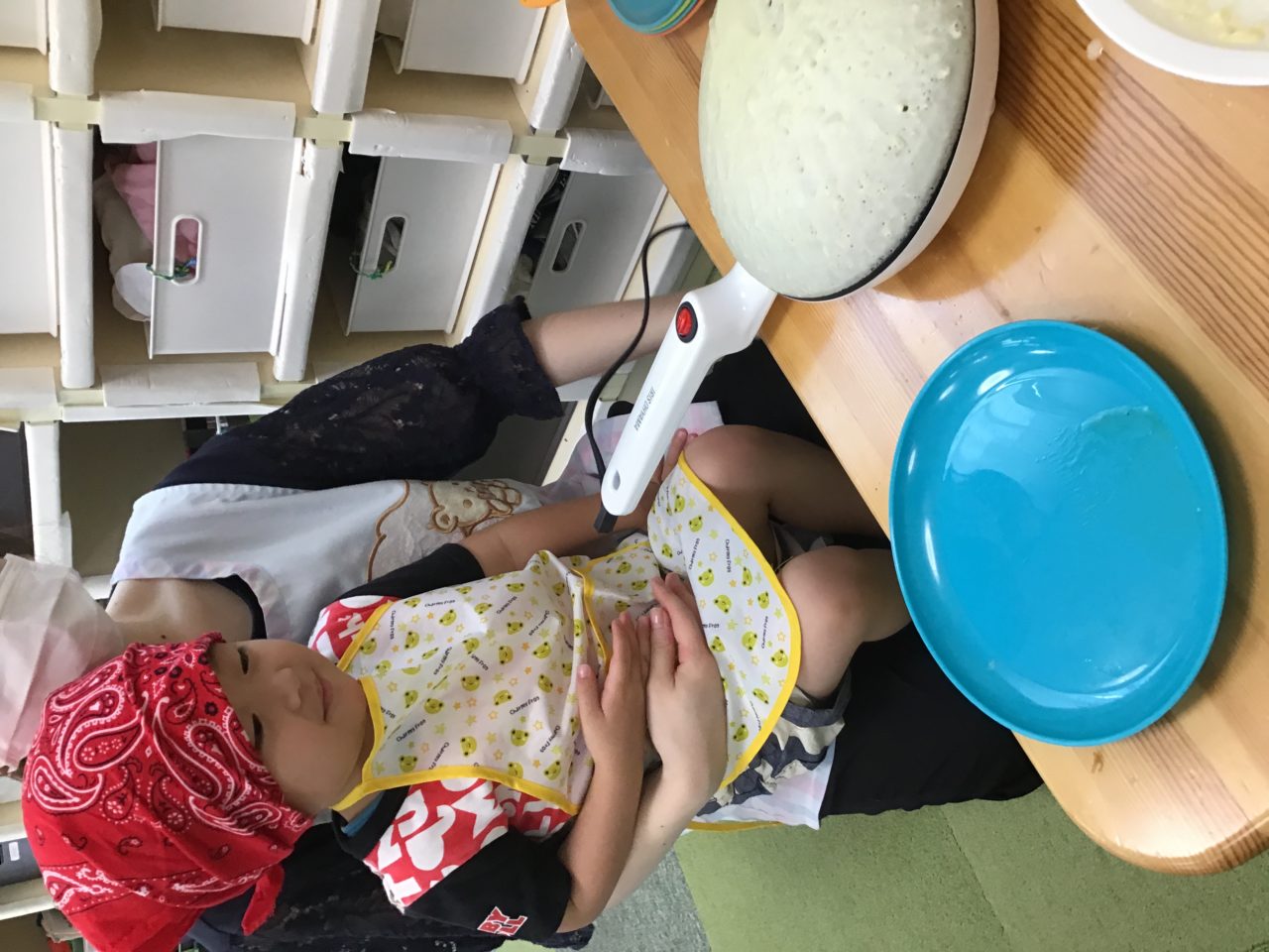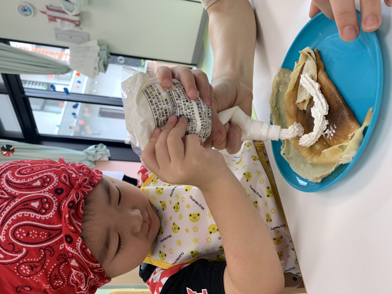 お世話になっております。きらきら保育園秋田駅前の石田です。今回はクレープ機を使って美味しいクレープを作ってみました?