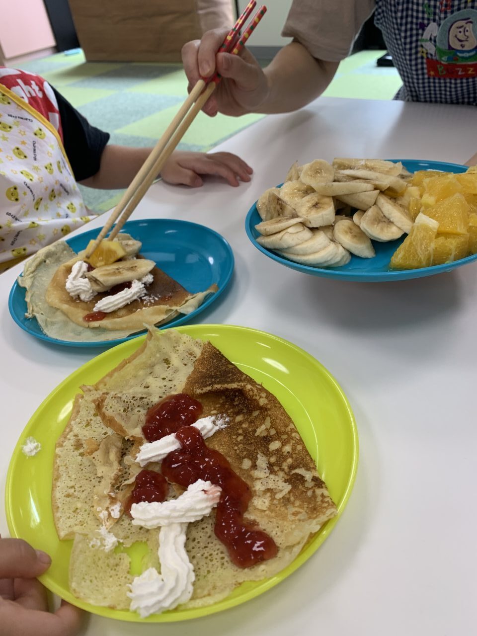 大丈夫かなって作ってる子供さんもいるけど、自分で作ったクレープは絶対美味しいですよね😋