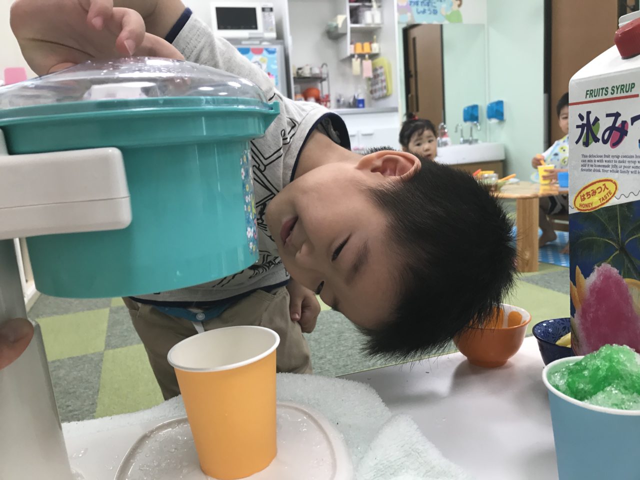 たくさん遊んだ後は食後にカキ氷??自動で出てくるかき氷にニヤニヤが止まりません?今日はメロン味と、レモン味?メロン味が大人気でした?
