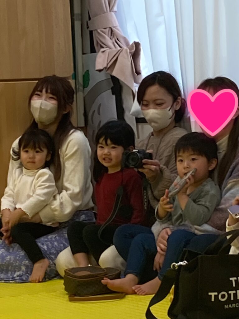 最後にサプライズゲストとして、さらさの畠山パートナーに登場していただき、寿限無のお話をしていただきました。難しそうなお話かと思いきや、子ども向けにアレンジして下さっており、真剣に聞く子どもやケラケラ笑いながら聞いている子どももいました??楽しいお話ありがとうございました♬