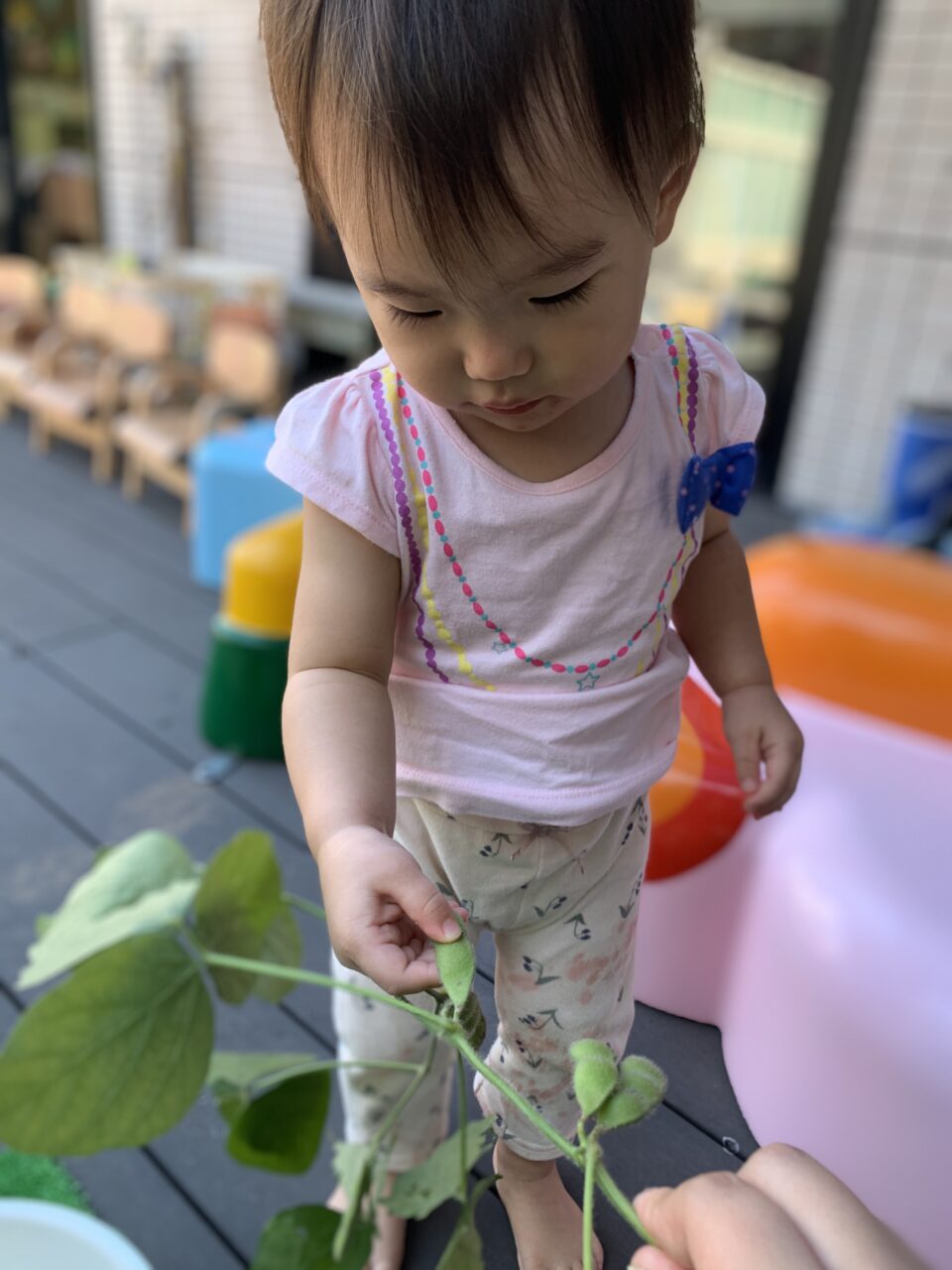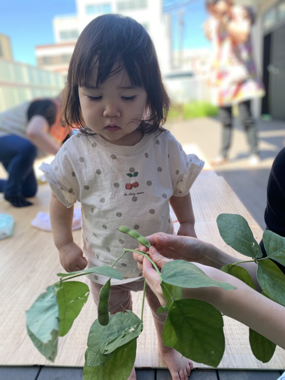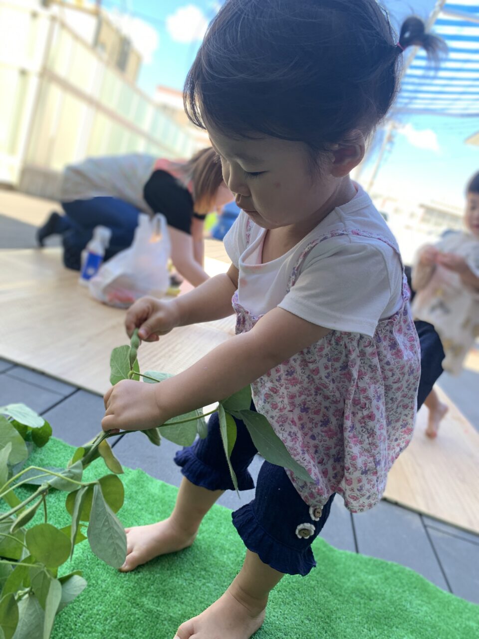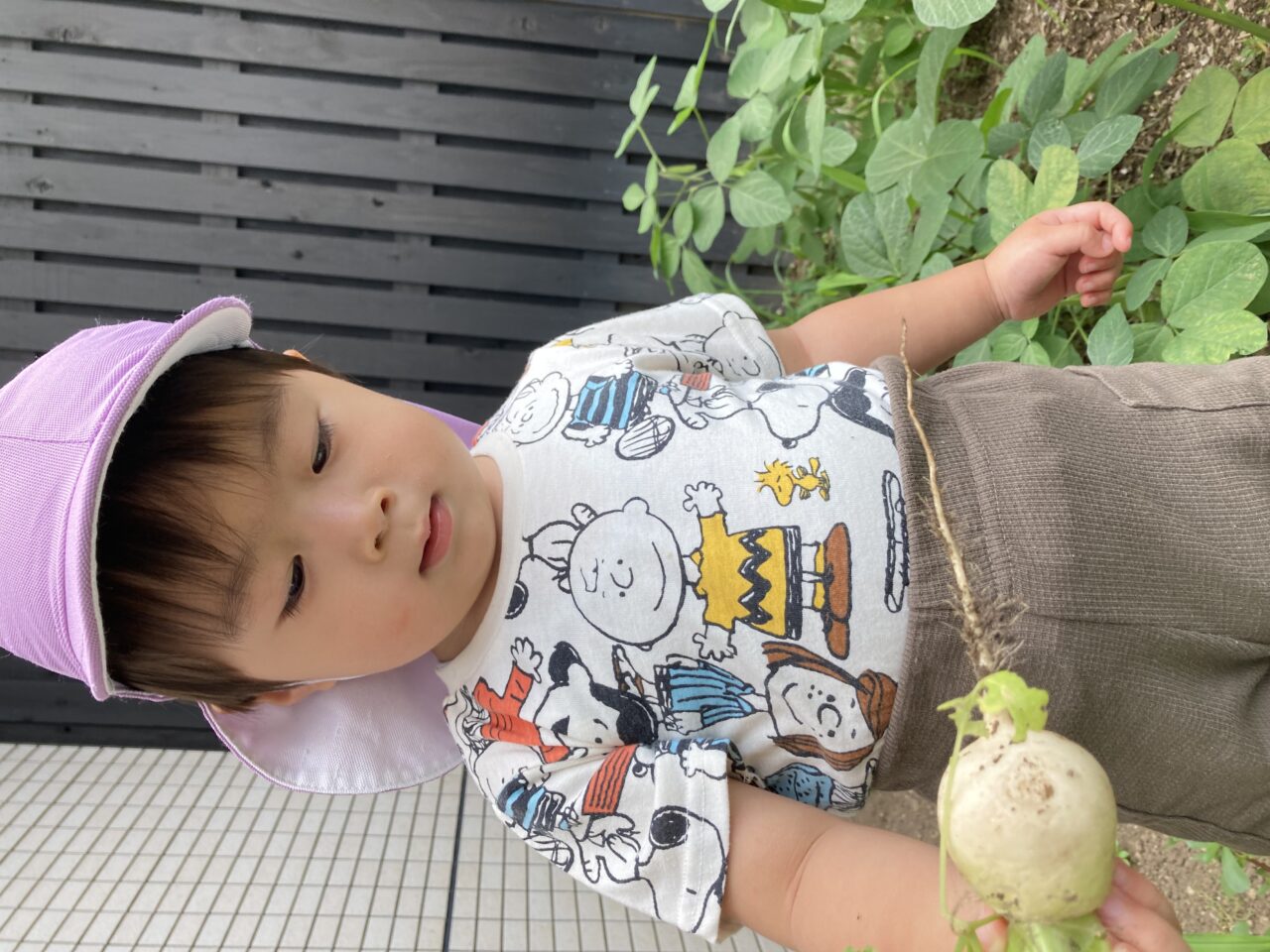 春にみんなで種を植えたカブと枝豆が大きくなったので収穫しました??