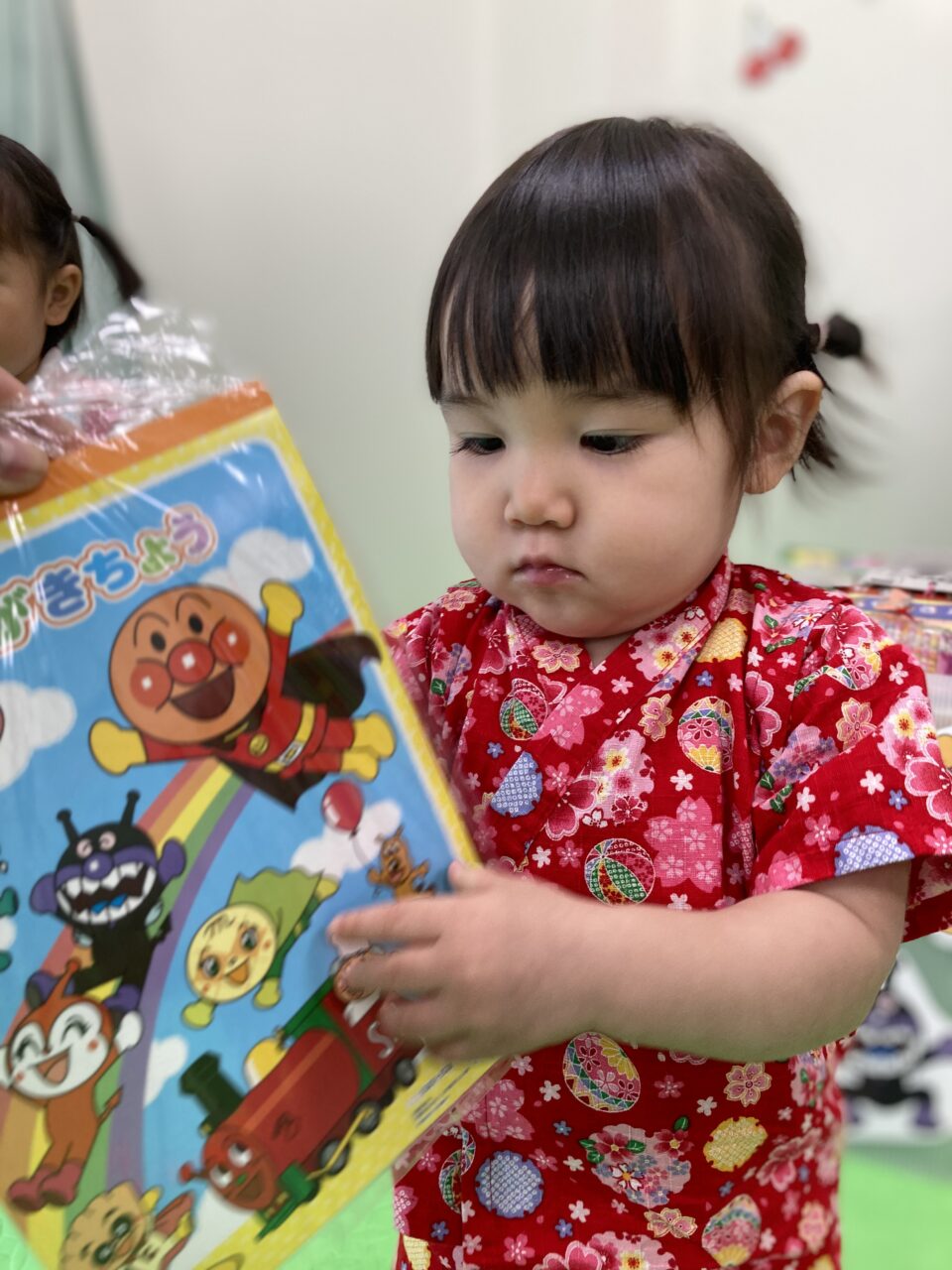 アンパンマンシリーズのブレスレットをつけて、アンパンマン音頭♬を踊りましたよ。手をふりふりさせて、とっても上手です❣️