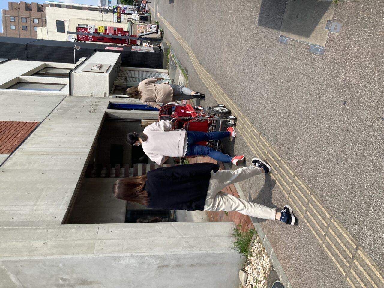 駅前付近は車や自転車も多いので、前後の確認をしながら避難場所へ向かいます。