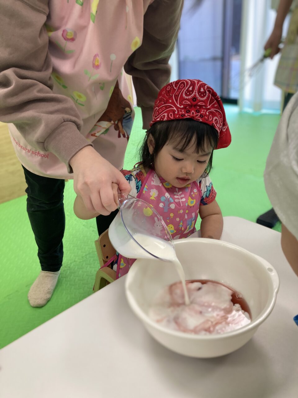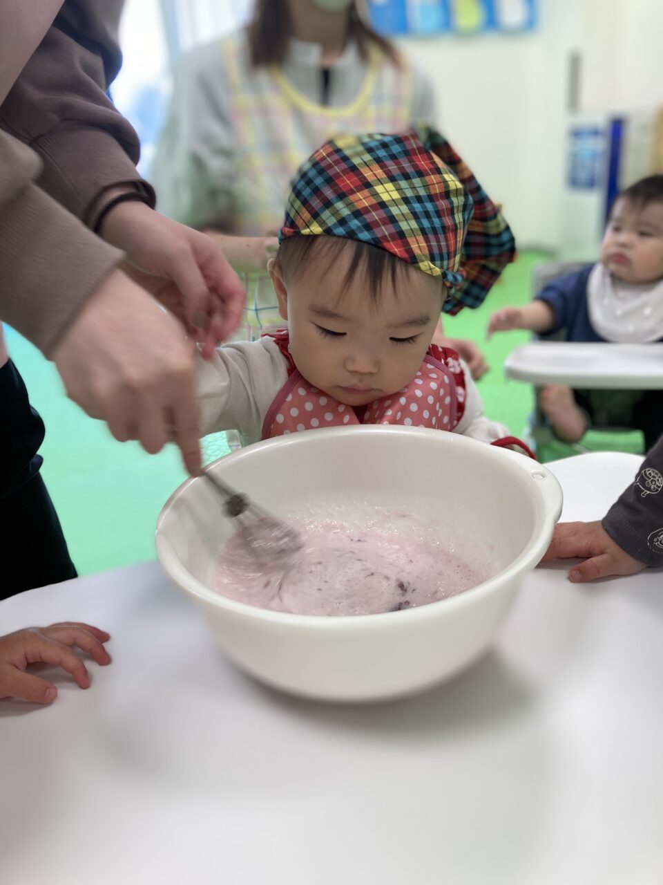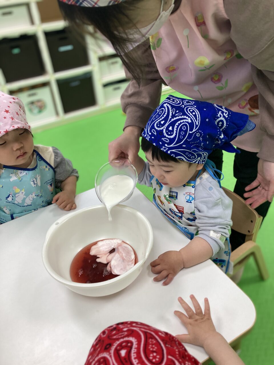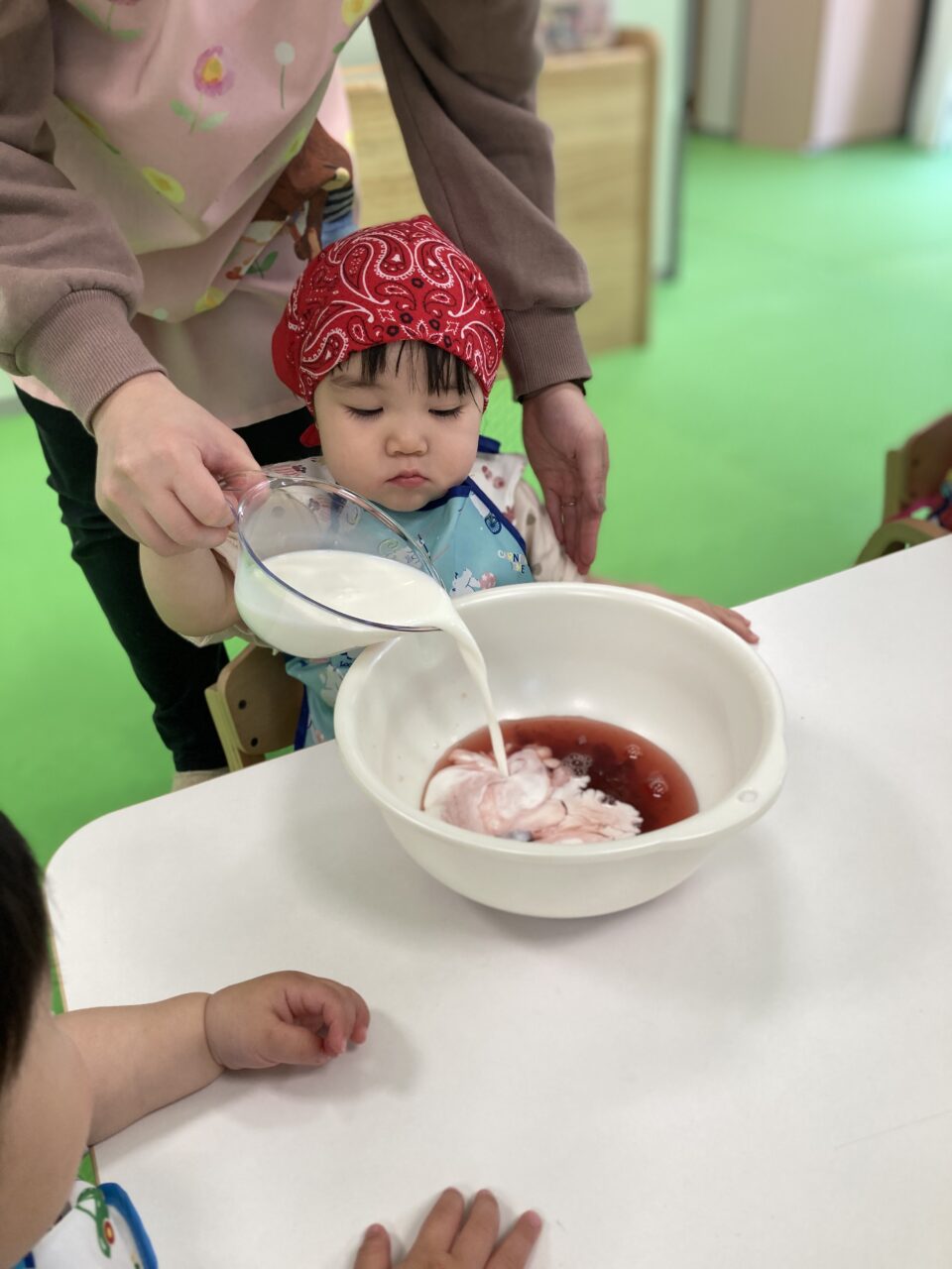 今年度はじめてのクッキングで午前のおやつにフルーチェを作りました!