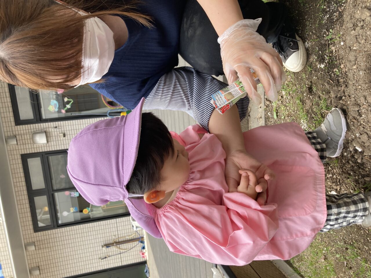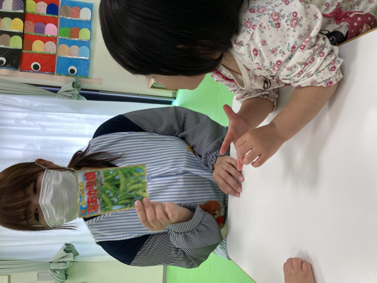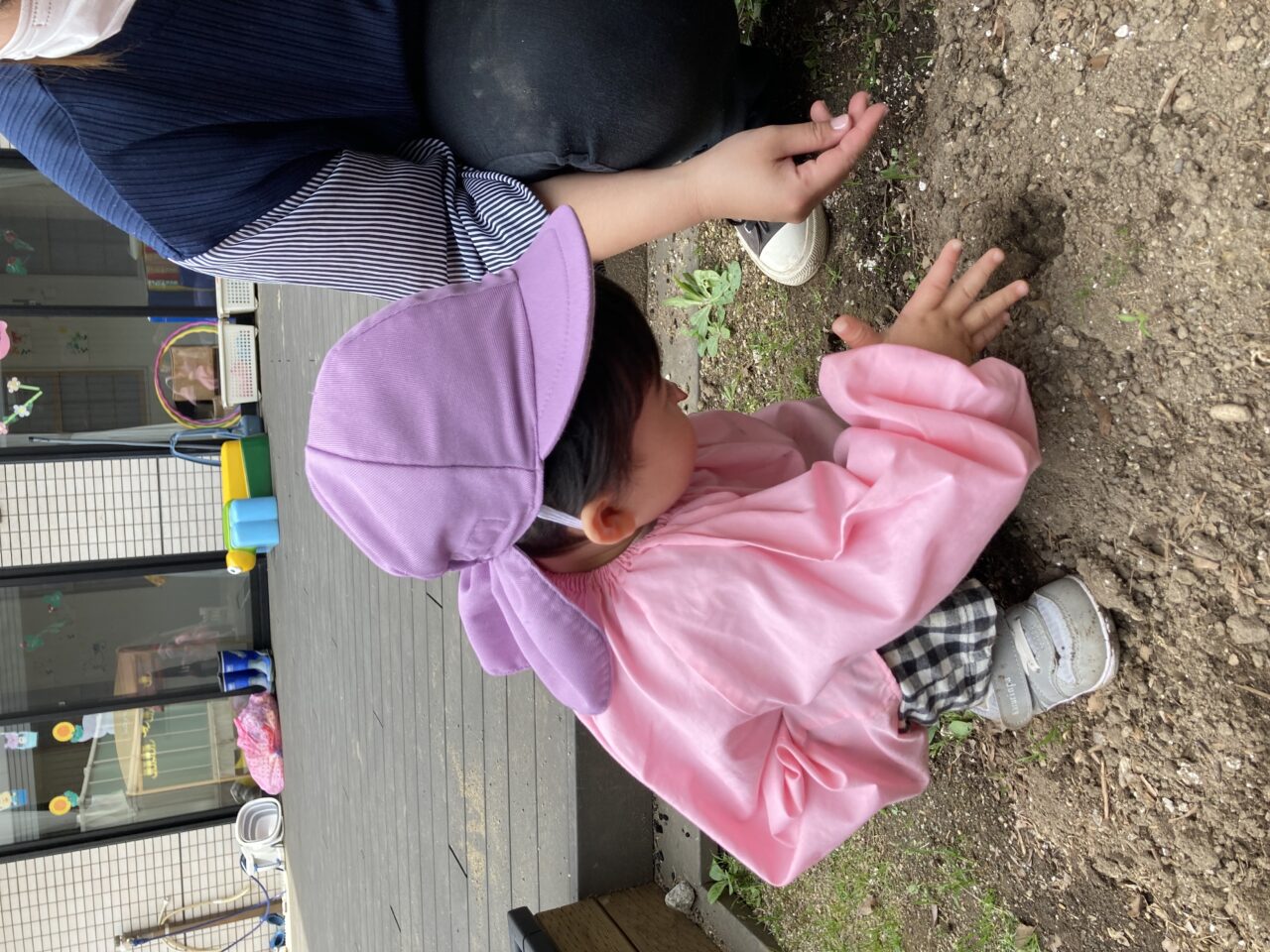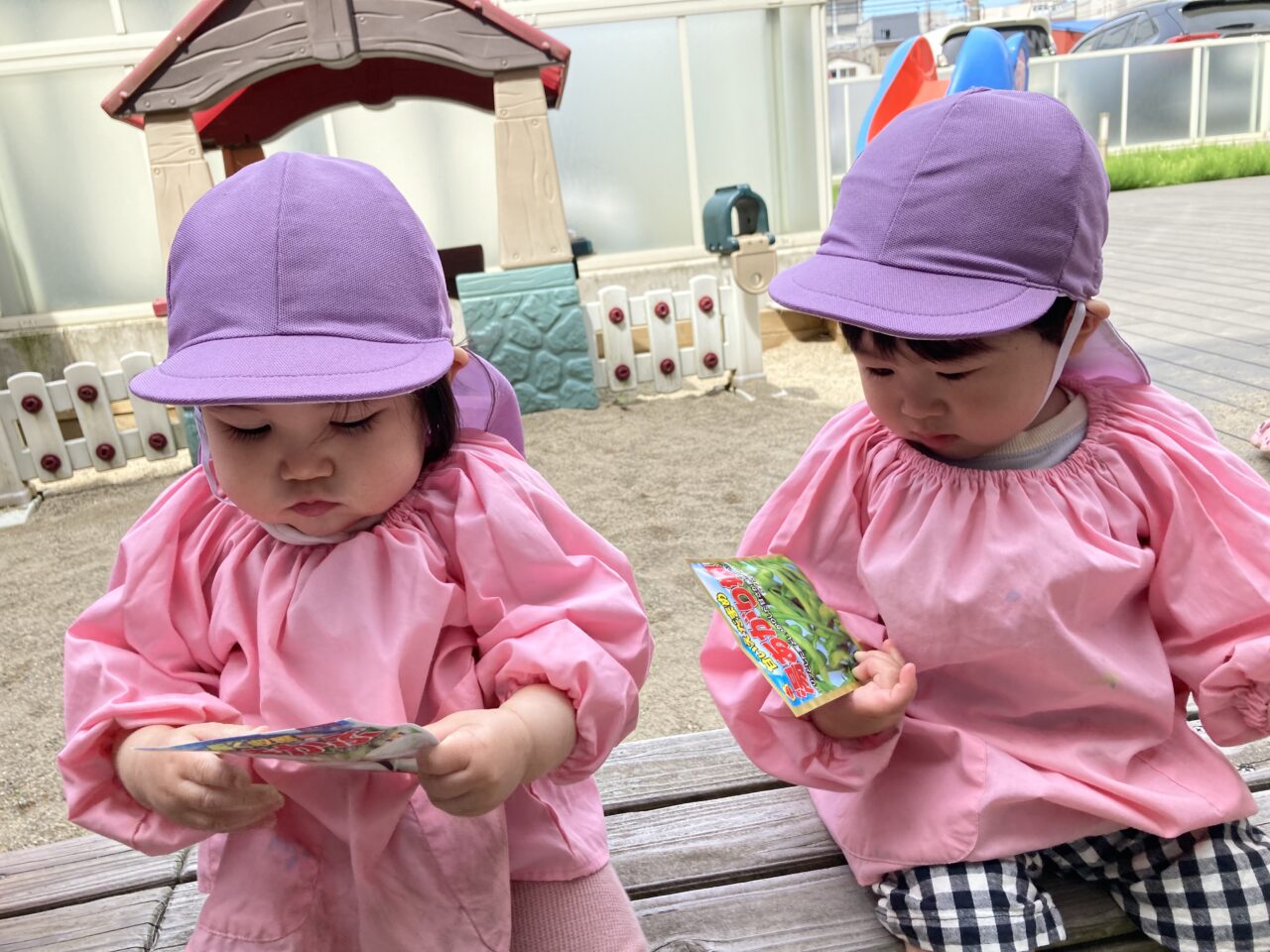 みんなの小さなおててで種を穴の中に置いてもらいます?