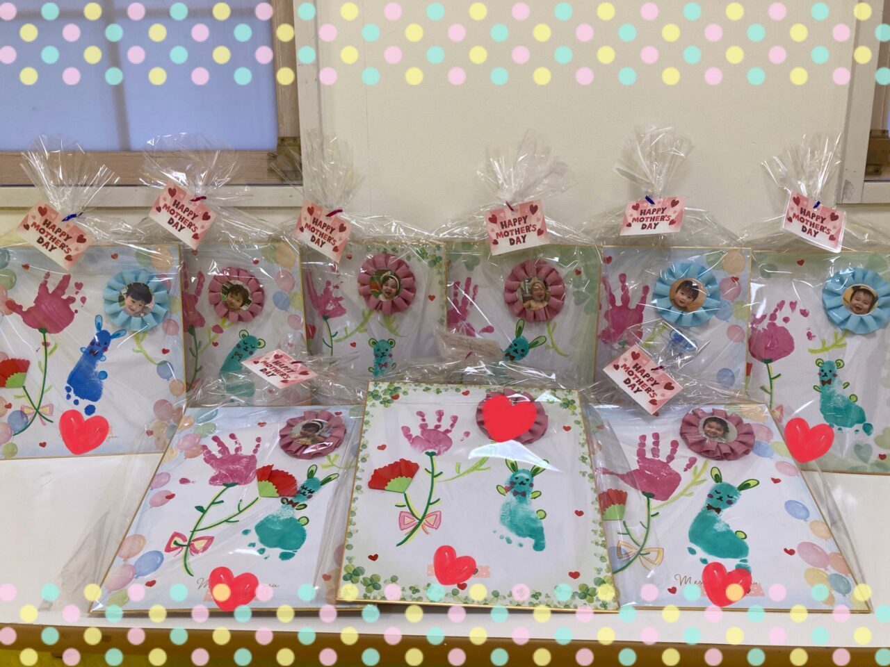 子ども達の手型はカーネーションに、足型は動物??に変身して