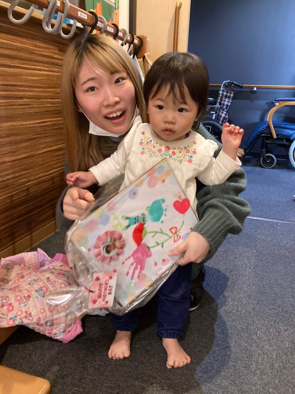 少し照れながらも、ぎゅっー?と、プレゼントを渡していました(笑)?