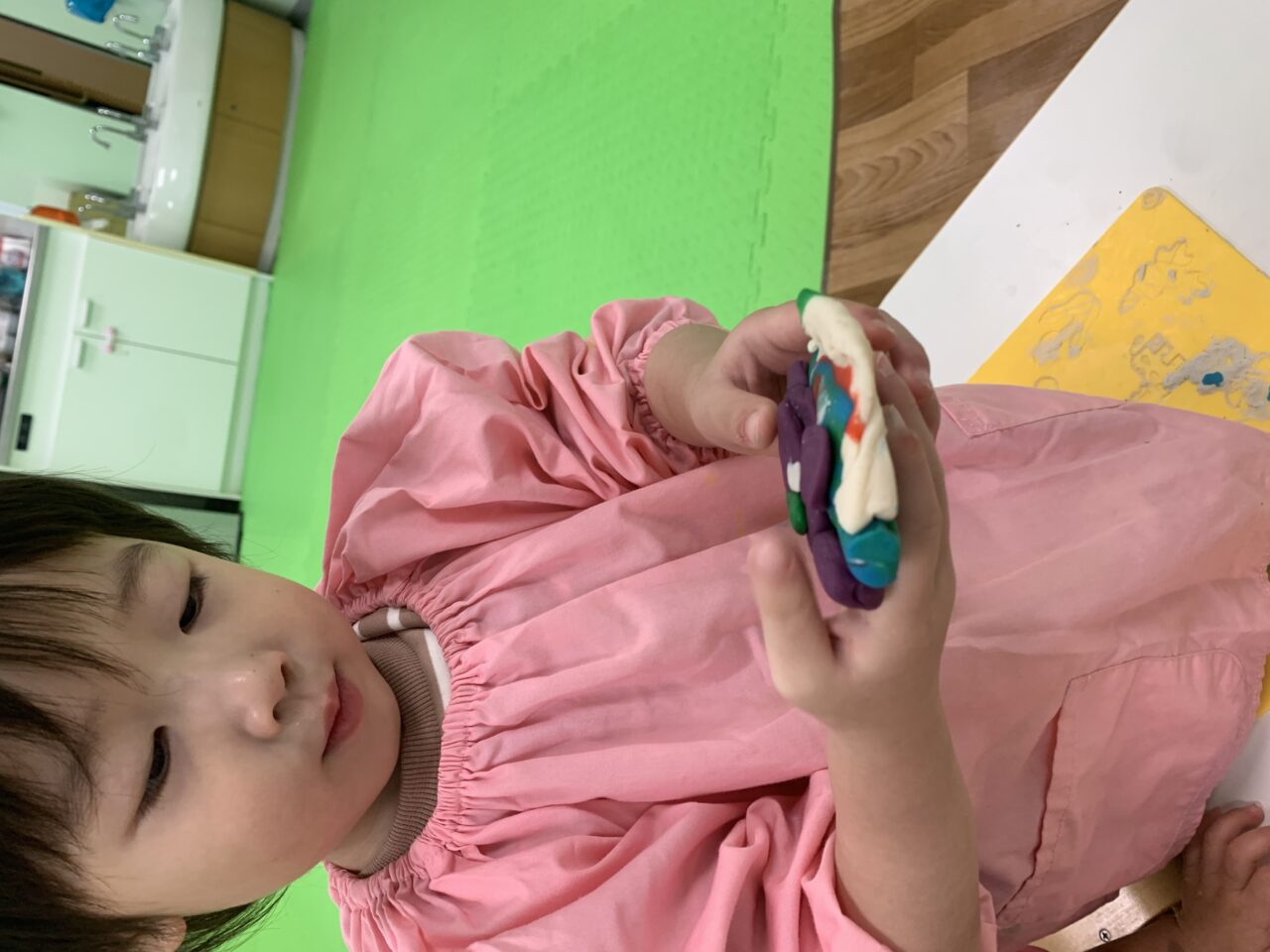 先日にじ、そら組さんとカラー小麦粉粘土で遊びました?