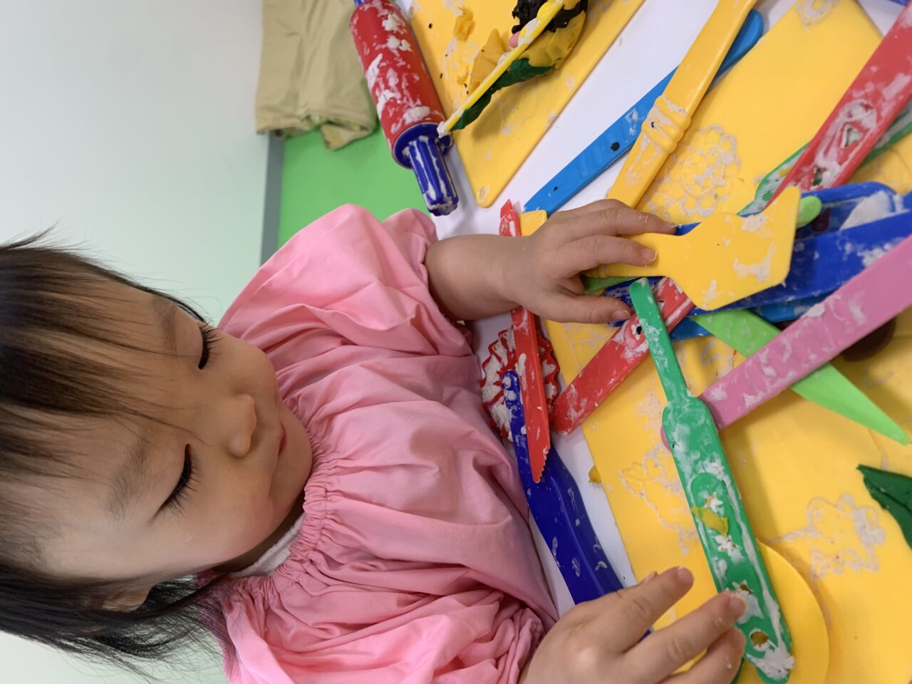 色を混ぜたりヘラにつけてお団子にしたりと遊び方はたくさんでした?