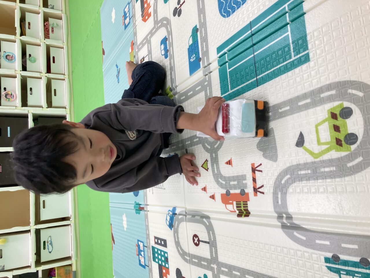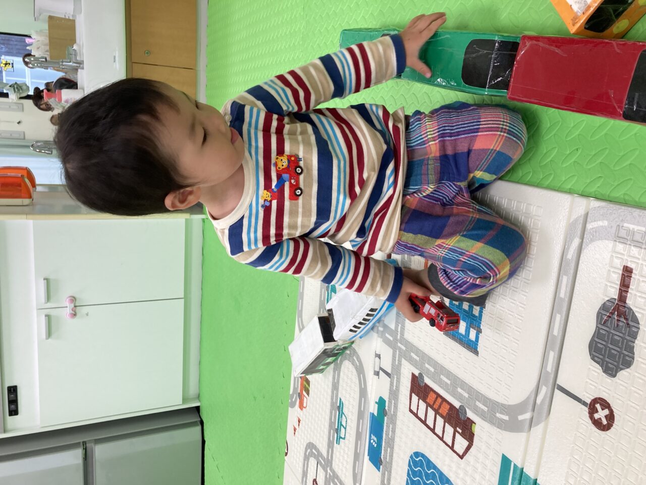 今日はお部屋でゆったり、、、と思いきや、道路マットを出すと興奮気味の