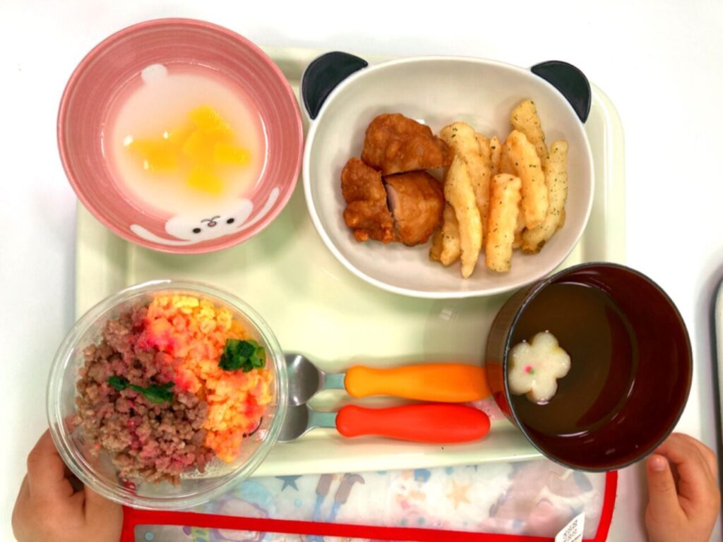 給食は、一冨士さんがおひなさまランチを作ってくだいました。