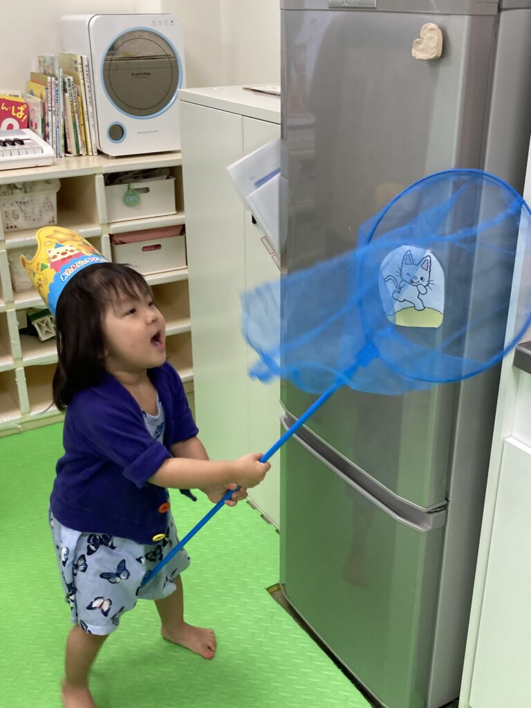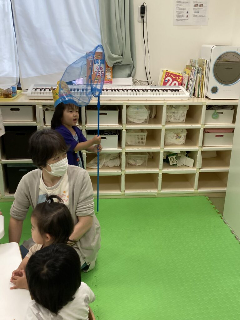 虫のおもちゃでは、園で育てている虫かごに入ったスズムシから、虫を出しているんじゃないか、というお父さんの発想に大ウケ???