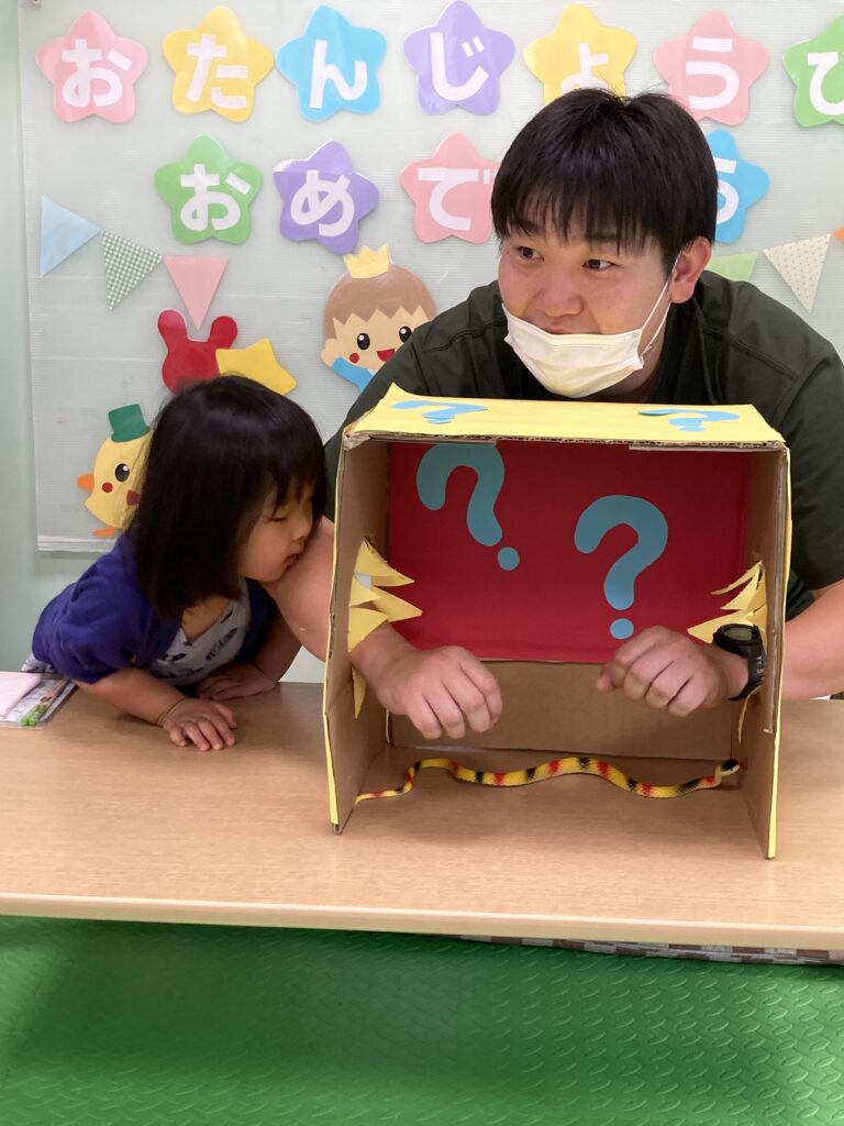 最後に?を箱に隠してHちゃんに当ててもらいました???