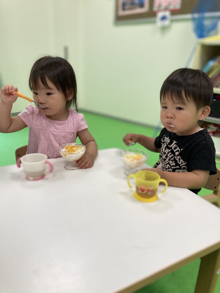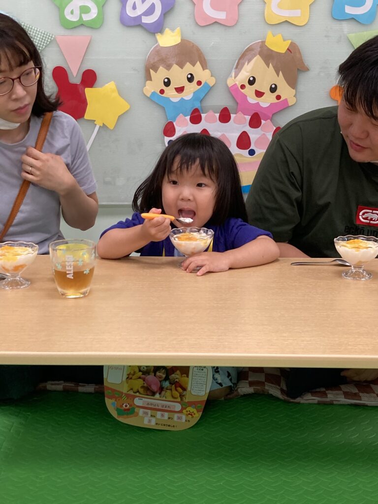 お祝いデザートとしてみんなで?フルーツヨーグルトゼリー?を食べました?