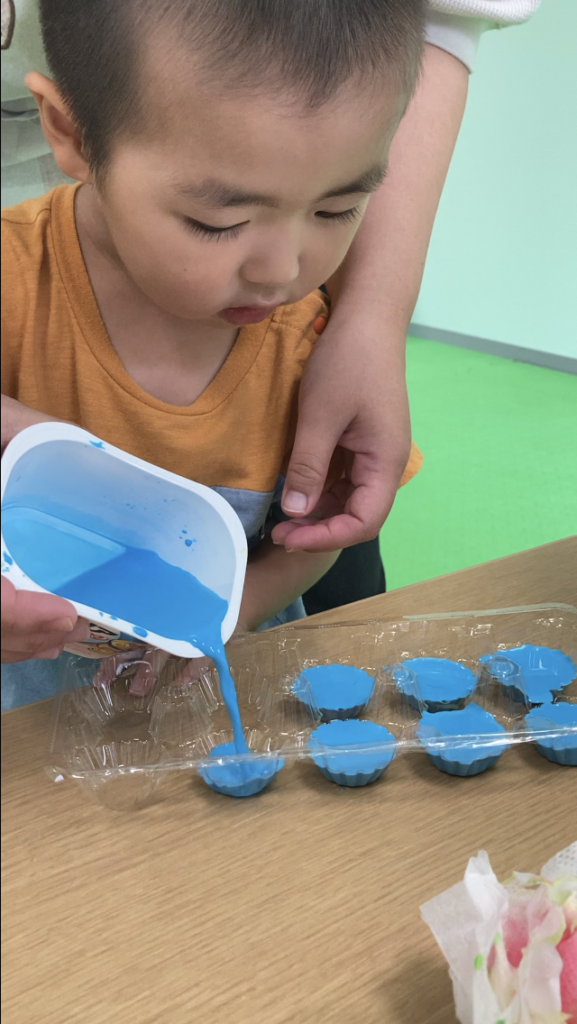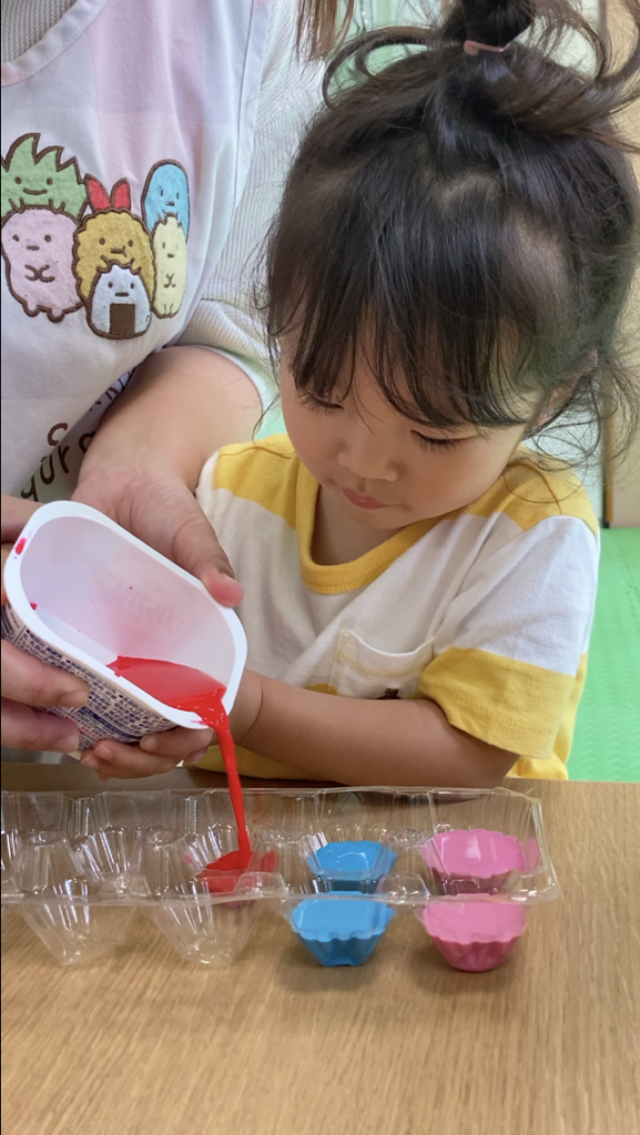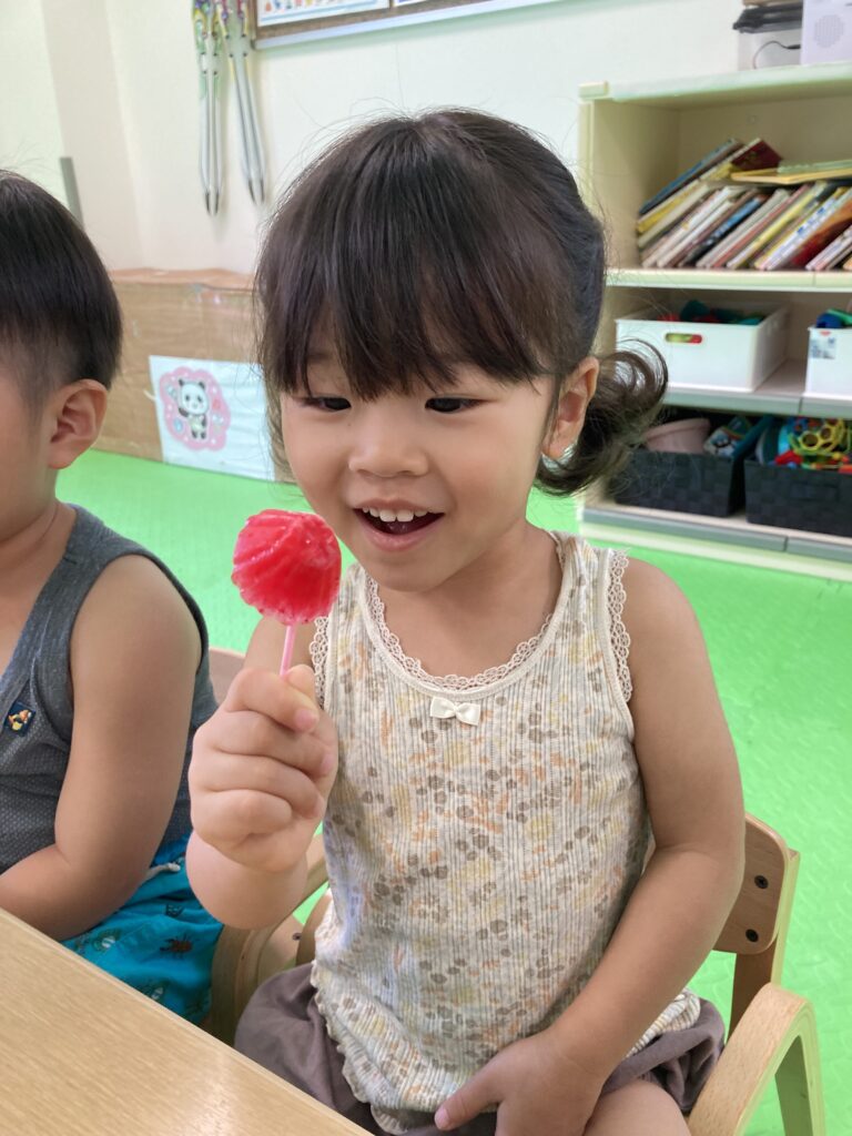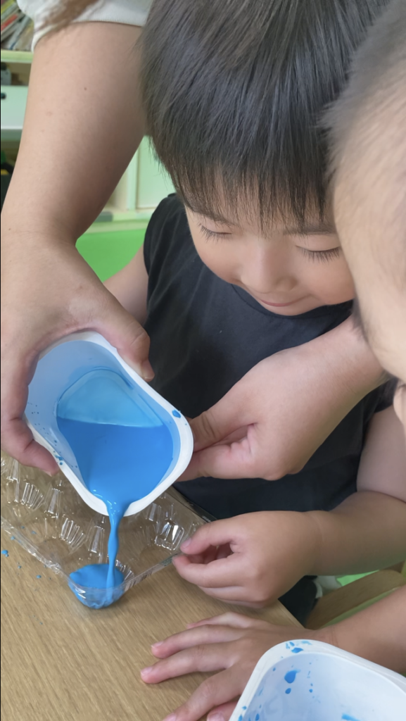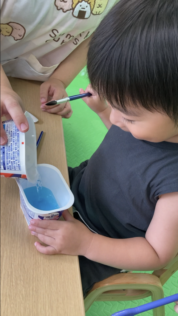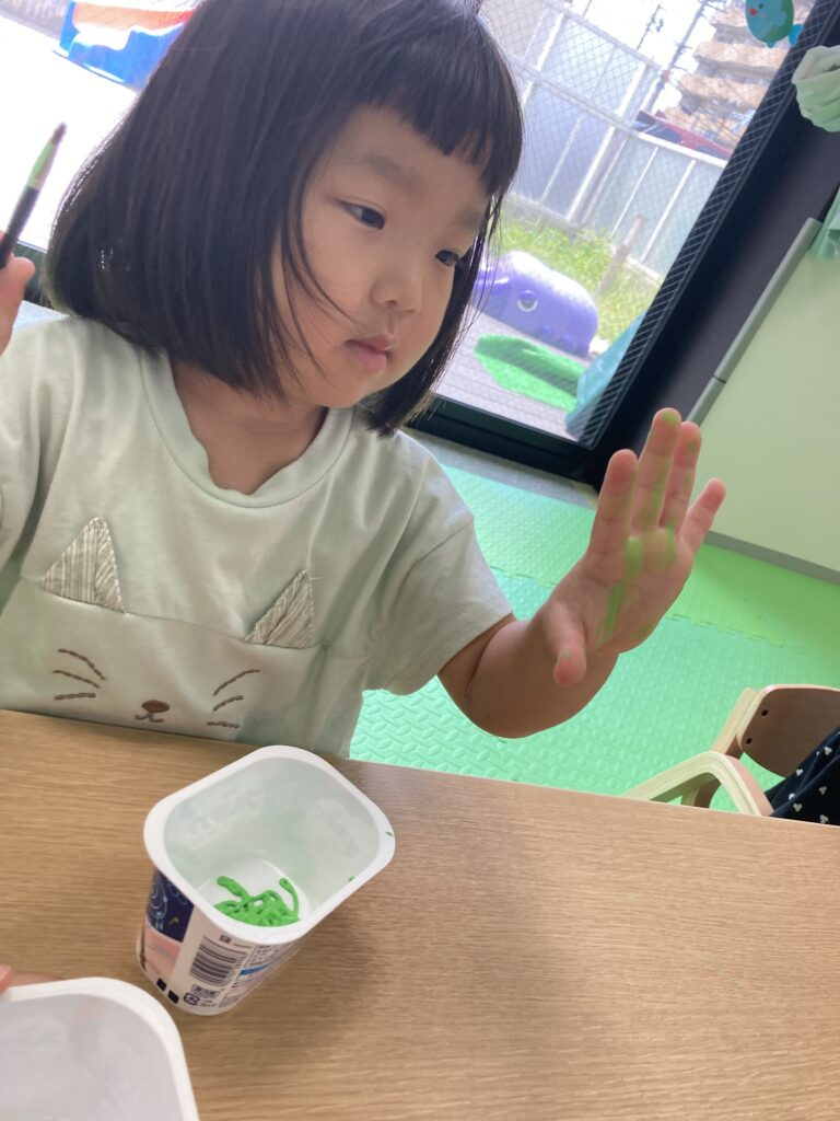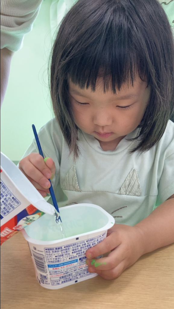 「すごーい✨」「おいしそう?」と、変身した絵の具に大喜びです?